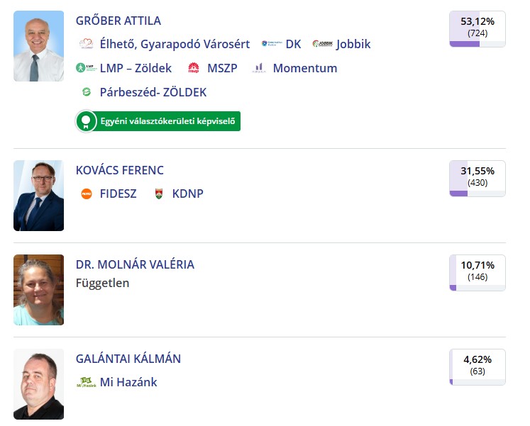 Ezen előzmények után Grőber Attila a 3. választókörzetben (Huszár ltp.) szerzett egyéni képviselői mandátumáról lemondott.