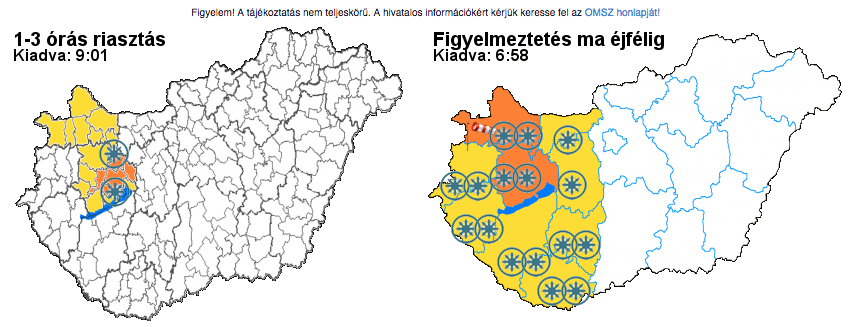 A további időjárási helyzetről a http://www.met.hu/idojaras/veszelyjelzes/riasztas/ oldalon tájékozódhatnak!