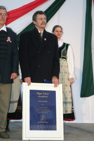 „Pápához a szakmai munkám – hat évig repültem itt, itt értem el a szuperszonikus pilóták közt a legmagasabb szakmai szintet, első osztályú, aranykoszorús vadászpilóta lettem – és a magánéletem is köt, hiszen itt ismertem meg a feleségemet, Anikót. Több, mint harminc éve ismerjük egymást, ő teremtette meg azt a hátteret, amire mint vadászpilótának és mint űrhajósnak szükségem volt. Vállalta és végigélte velem ezt a sok évtizedet, ami csodálatos dolog. Amikor 1972-ben ideérkeztem, kinyílt számomra a világ. Megtaláltam itt valamit, amit addig nem ismertem. A mi életünkben tradícióival, kulturális örökségével, emlékeinkkel van jelen Pápa, én ezt kaptam a várostól. Metropoliszokban fordultam meg sok helyen a világon, de bárhol jártam, bármilyen közösségben, Pápa mindig ott volt velem. Sokszor előveszem azokat a fotókat, amik 1980-ban itt készültek. Fantasztikus volt a fogadtatás, a szeretet és az emberi tisztelet az űrhajósok iránt. Tele volt a Fő tér ünneplőkkel. A 2005-ös díszoklevél-átadón is éreztem a pápaiak szeretetét. Arra az alkalomra is úgy készültem, hogy a fényképek segítségével felidéztem az 1980-as pillanatokat. Igen lelkesített. Azok az emberek, akik akkor gyermekként, ifjúként fogadtak, ma felelős beosztásban dolgoznak, szülőként gyermekeket nevelnek. Amikor megkaptam Pápa Város Díszoklevelét, úgy éreztem, hogy azok, akik a huszonöt évvel azelőtti eseményre emlékeztek, továbbadják ezt a nagyszerű érzést, az első magyar űrhajós kötődését Pápához. Büszkeséggel tölt el, hogy amikor idejövök, látom azt a törekvést, hogy a város kulturáltabbá, szebbé, gazdagabbá váljon. Aki először jár itt, az egy nagyszerű kisvárost lát. Az természetes, hogy a barátaimmal, pilótákkal, mérnökökkel, polgári alkalmazottakkal találkozom, hiszen együtt fociztunk, együtt jártunk a strandra, együtt szórakoztunk a tiszti klubban. Szeretek ellátogatni a Honvéd Bajtársi Klubba is. Ilyenkor megöleljük egymást, megosztjuk egymással az emlékeket, az élményeket.