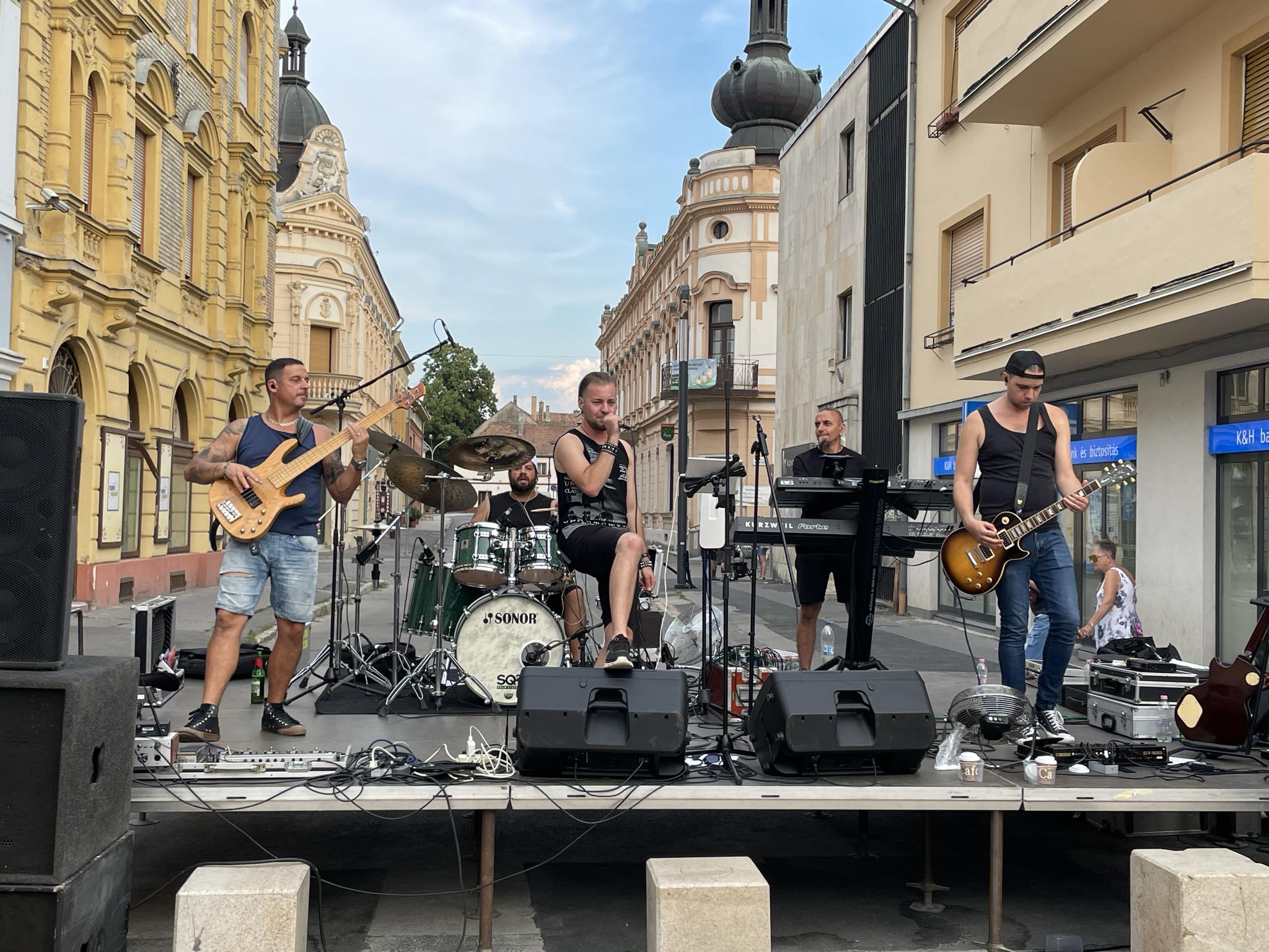 A júliusi alkalom igazán különleges volt, hiszen a Stage Pass koncertzenekar másfél órás fellépéssel támogatta a rendezvényt, a nagyszerű zenészek teljesen ingyen jöttek el Pápára, értesülve a rendezvénysorozatról. A zenekar repertoárjába számos rockos hangzású dal belefért, kiváló hangulatot teremtve, a nagy meleg ellenére.