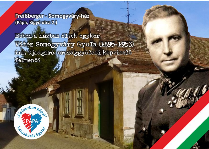 Az "Elsősorban pápai" - Városbarát Egylet (EpVE) néhány önkéntese azért ment el 2017. április 21-én, pénteken a pápai Kígyó utcába, a város szinte egyetlenegy "parasztbarokk" épületéhez, a „Freißberger-Somogyváry”-féle házhoz, hogy a pápai származású író, Somogyváry Gyula születésnapján rendhagyó módon emlékeztessen rá és műveire. Úgy, hogy az EpVE által e napra kiadott Somogyváry-emlékképeslapot (melyet az idei, városi Kossuth-Emlékprojekt pecsétjével láttak el) az utca lakóinak emlékeztetés céljából postaládáikba elhelyezzék. Több, hasonló jelentőségű épület található egy-egy utcában Pápán, ahol nevesebb, ismertebb személyek születtek, éltek, vagy hozzájuk köthető dolog van. A Kígyó utcai „Freißberger-Somogyváry” -féle alkalomhoz hasonlóan a jövőben szeretnének más pápai utcákba is elmenni a városbarátok, és ott is hasonlóan egy-egy emléklap eljuttatásával, az ott élő mai pápai lakókat figyelmeztetni-emlékeztetni hajdanában ott élt jelesekre, pápai példaadókra.