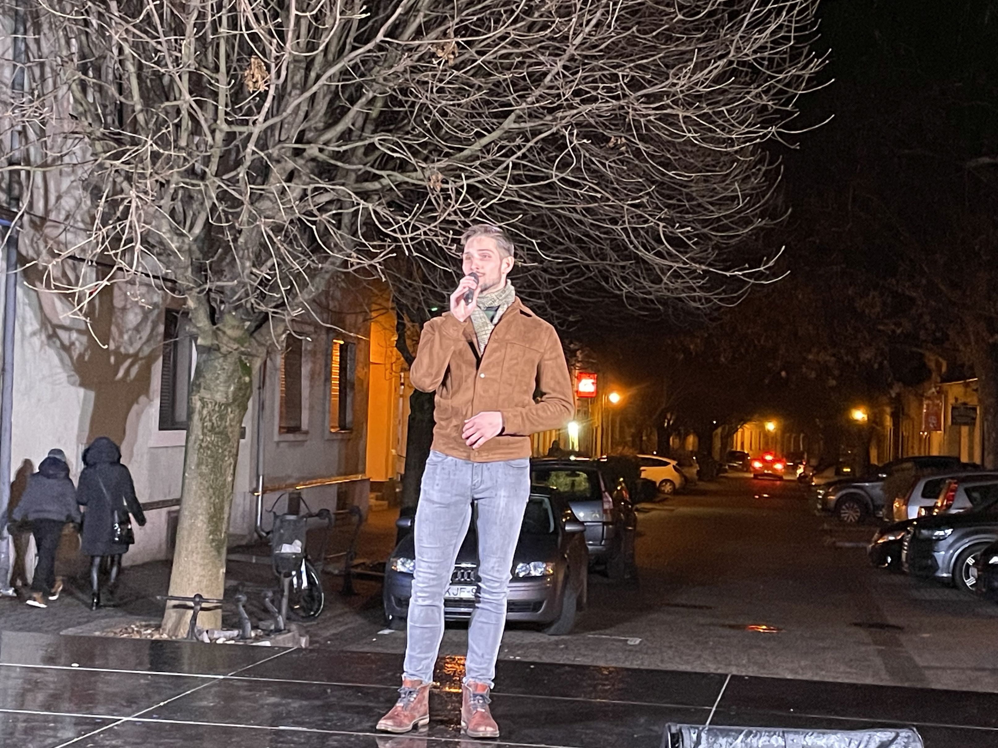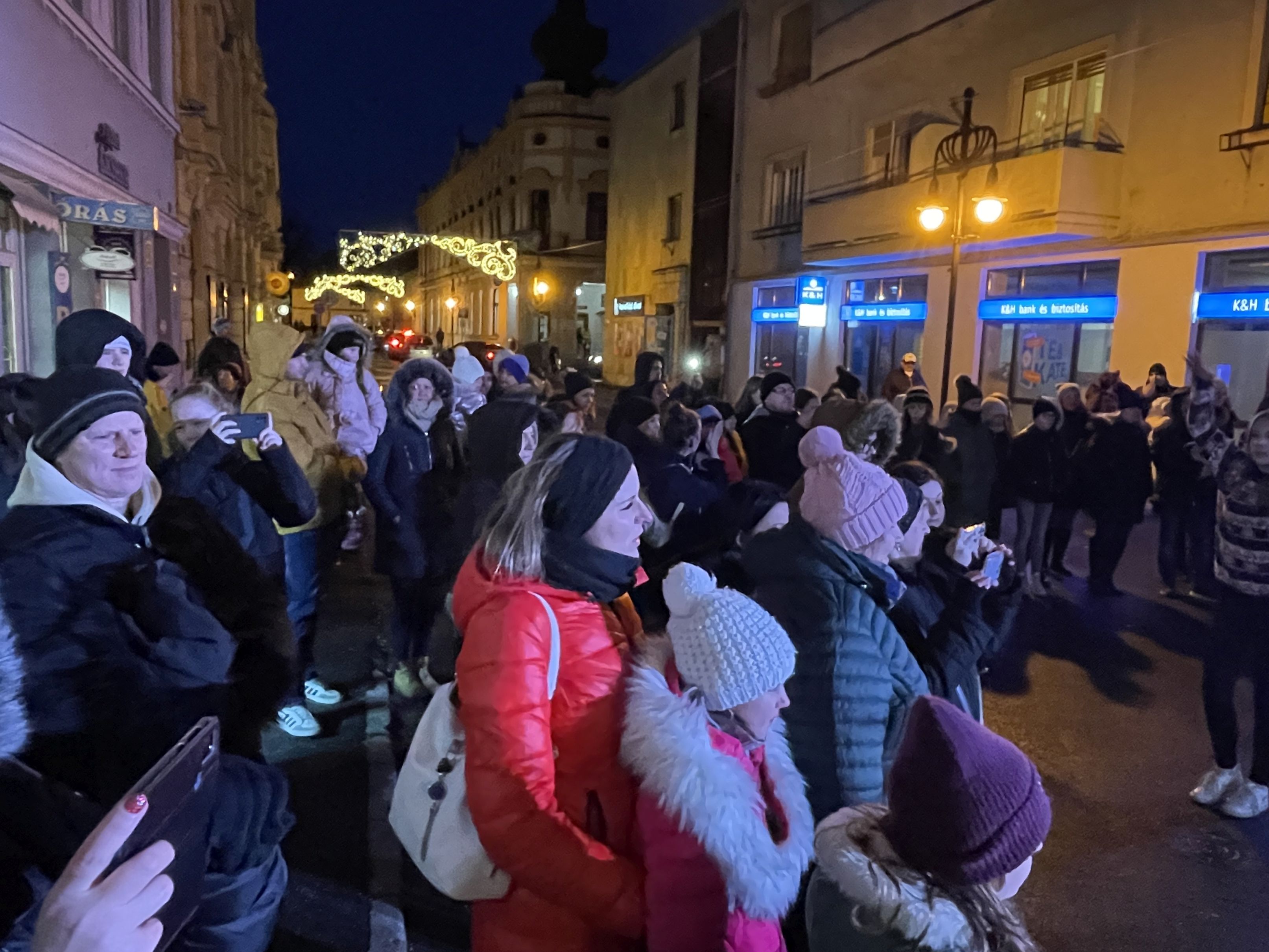 A tegnapi, utolsó adventi hétvége péntekjén is kimondottan sokan érkeztek a belvárosba, pedig az erős szél és az esős időjárás még így is sokakat távol tarthatott. Szórádi Gábor produkcióját követően a legnagyobb érdeklődés a Zsoodance performanszát jellemezte, a táncosok bemutatóját követően ugyanis egy Tiktok táncot tanítottak meg a közönség bátrabb tagjainak, amelyről aztán felvétel is készült. A Flores Band, a Megafone Zenei Egyesület tagjai, majd pedig Ifjú Martin szórakoztatta a közönséget, végül Valler Kata tárgyanimációs játékával zárult a programok sora.