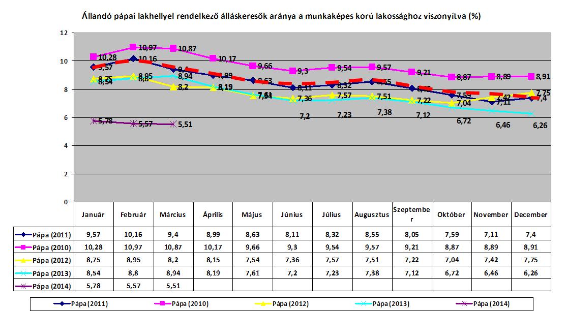 A foglalkoztatási adatok is pozitív irányba hatnak - derült ki a sajtótájékoztatón. A Munkaügyi Központ adatai szerint 2014 márciusában az állandó pápai lakhellyel rendelkező álláskeresők aránya a munkaképes felnőttkorú lakossághoz viszonyítva 5,51% volt. - Ez az adat utoljára 2002 környékén volt ilyen kedvező, 2010 februárjában közel a kétszerese volt. Ebben tagadhatatlanul benn van a közfoglalkoztatás is ,az elmúlt fél évben 468 fő vett részt a közfoglalkoztatásban a pápai lakhellyel rendelkezők közül. A kedvező foglalkoztatási adatok javulásának másik oka az, hogy több gazdasági társaság növekedési üteme jóval meghaladja az országos átlagot. Jelenleg a pápai Munkaügyi Központban 250 üres álláshelyet tartanak nyilván, ehhez képest 1200 körüli a munkát keresők száma - ismertette az adatokat Áldozó Tamás.