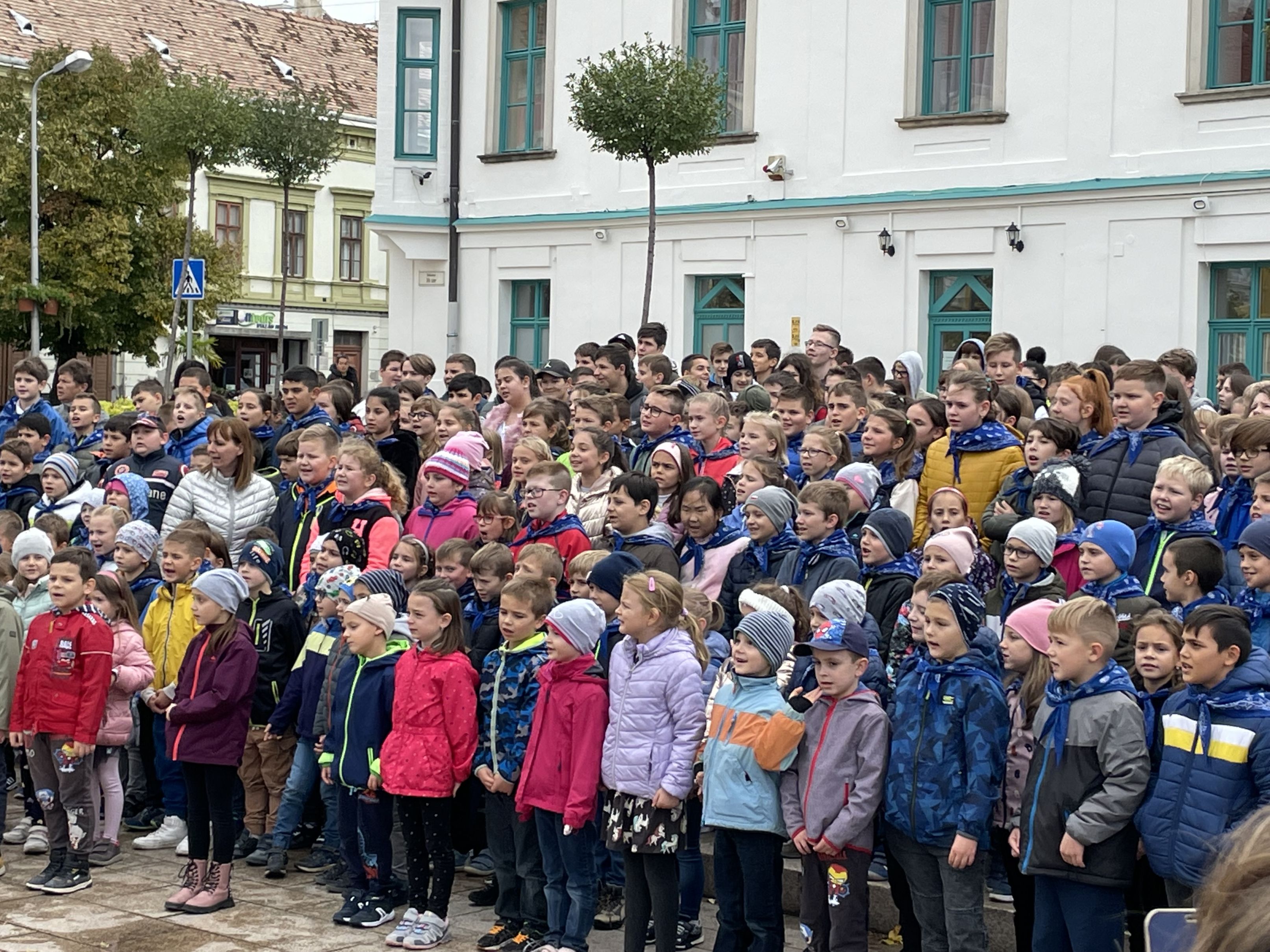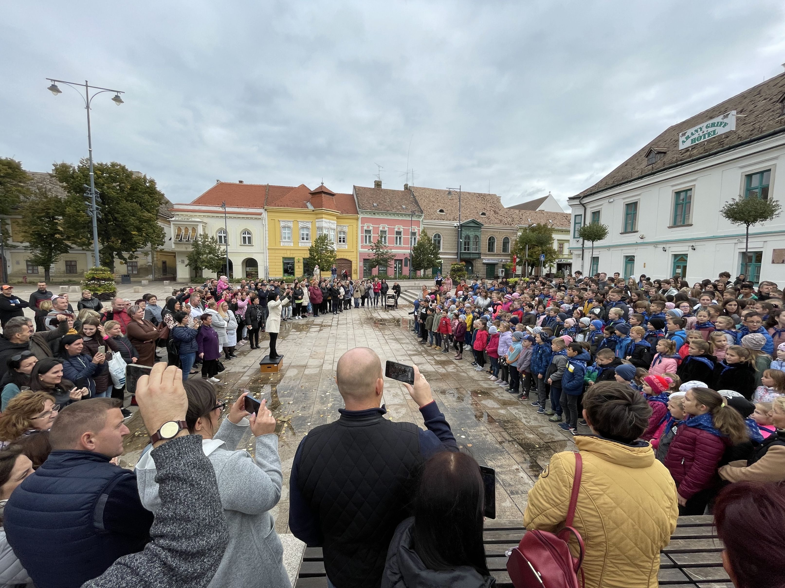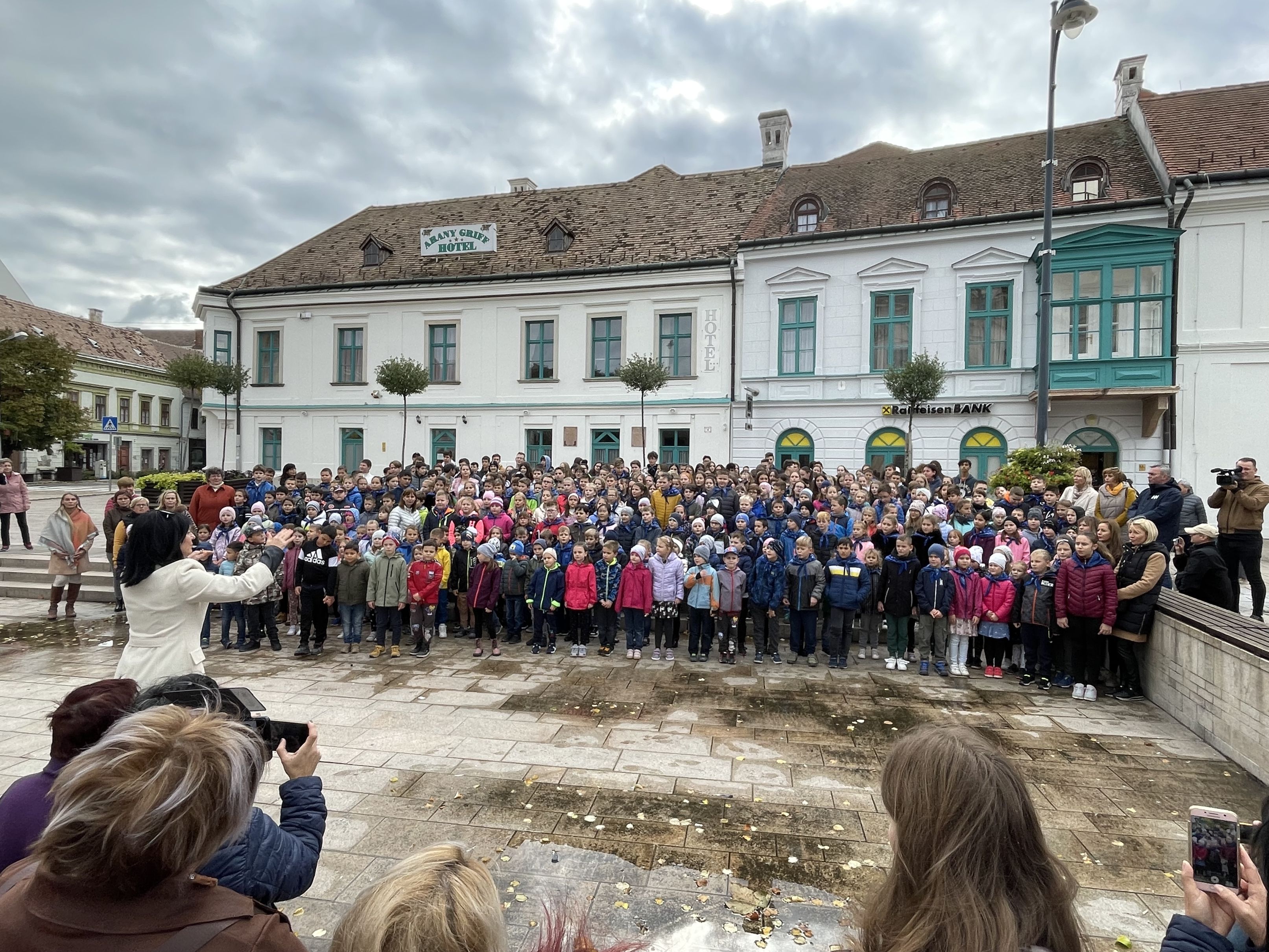 Eredetileg pénteken tartották volna meg az eseményt, ám az eső közbeszólt, így ma tűnt fel a diáksereg a belvárosban.