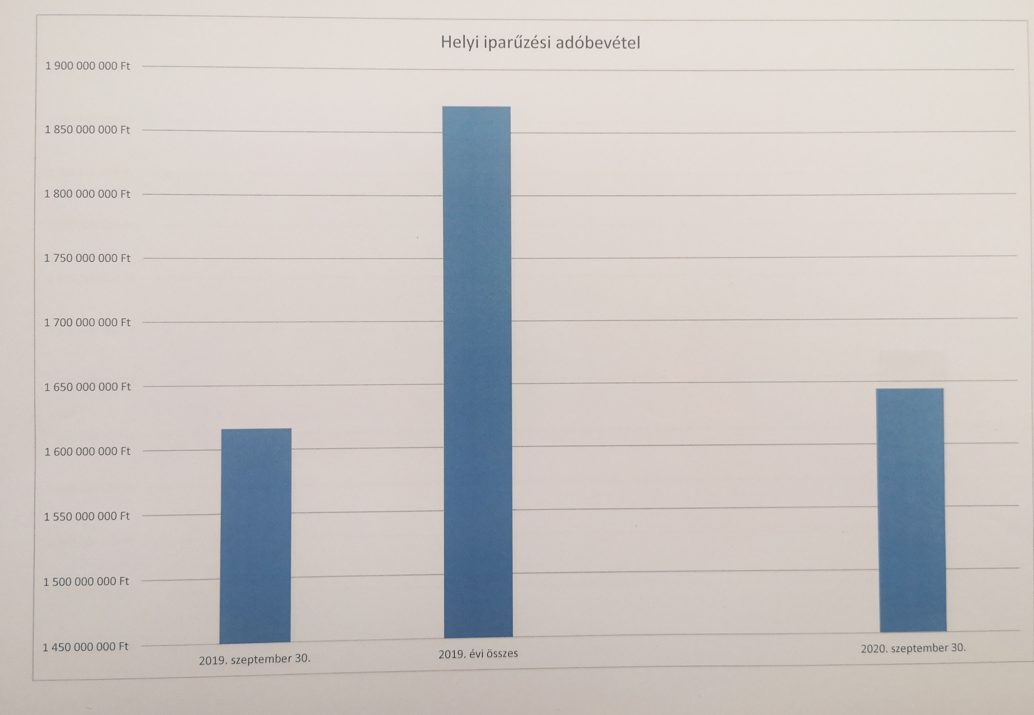 A város költségvetésébe érkező legnagyobb tétel az iparűzési adóból származik, a tavalyi évben 1,87 milliárd forint teljesült, idénre 2 milliárd forintot terveztek. Ehhez képest 1,64 milliárd forint érkezett be idén és több befizetéssel 2020-ban már nem kalkulálhat a város. Tehát a tavalyinál is lényegesen kevesebb iparűzési adóbefizetés történt, a tervezettnél pedig 350 millióval kevesebb érkezett a város számlájára.