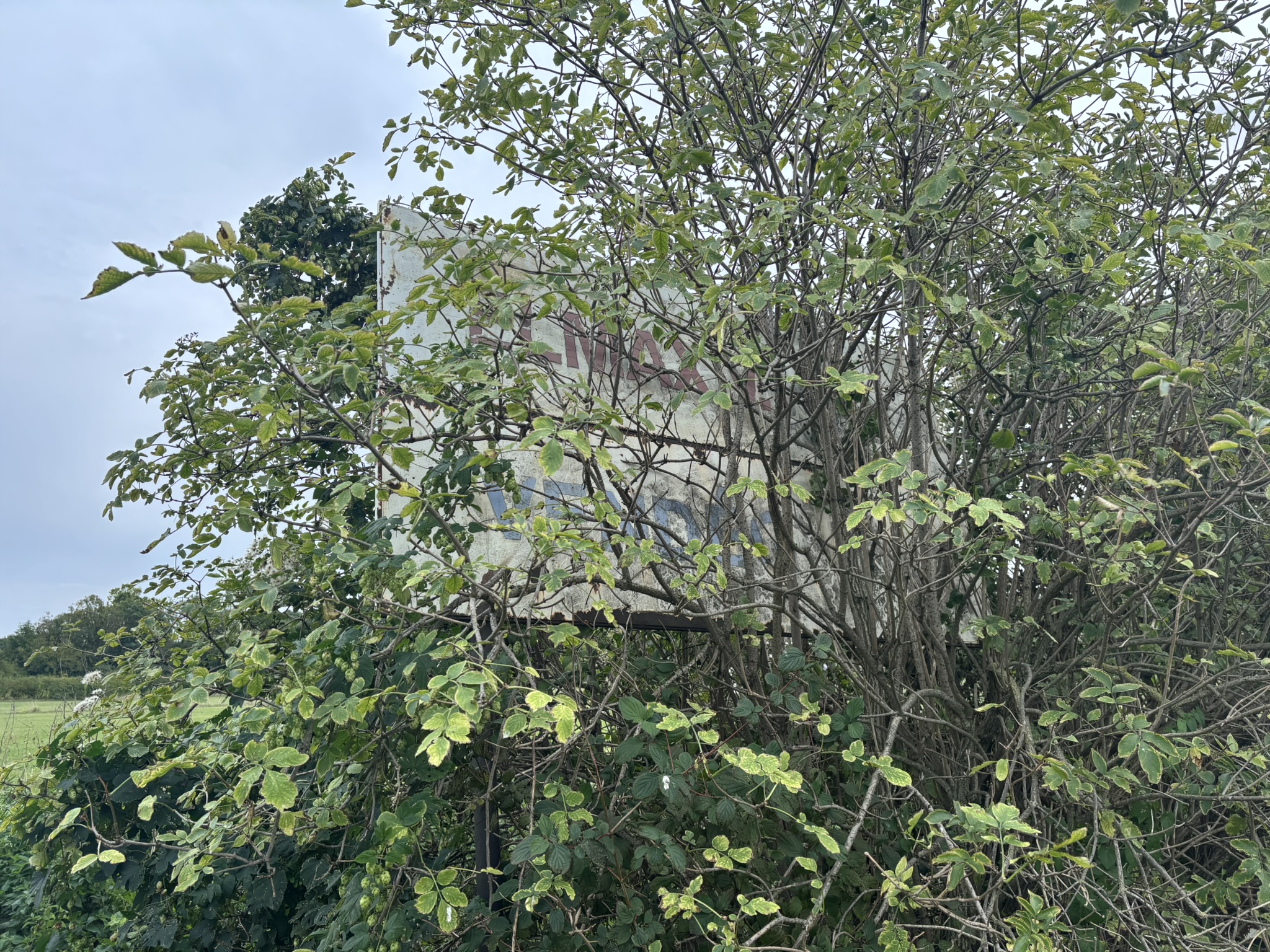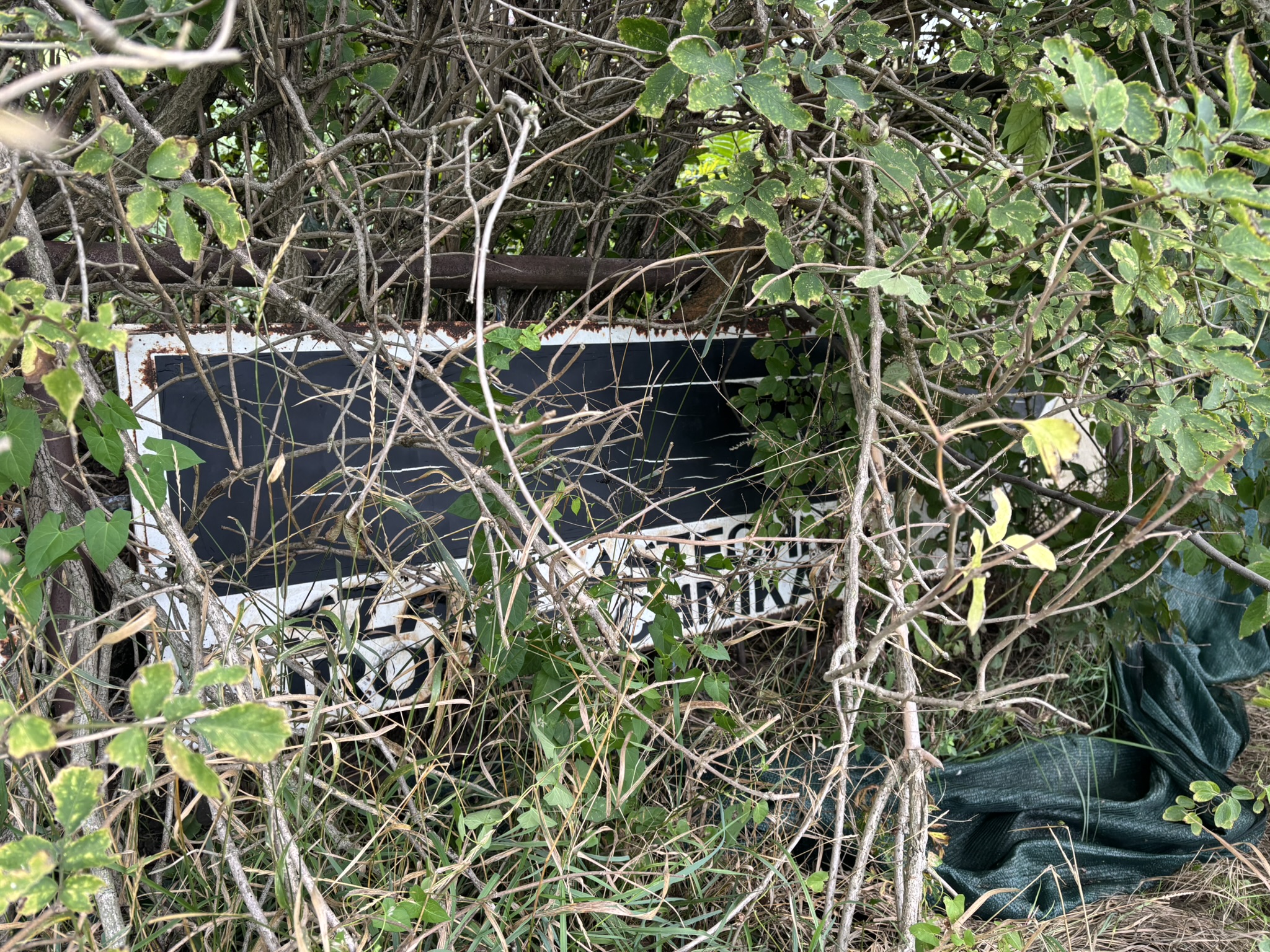 Egykori hirdetőtábla a gazban