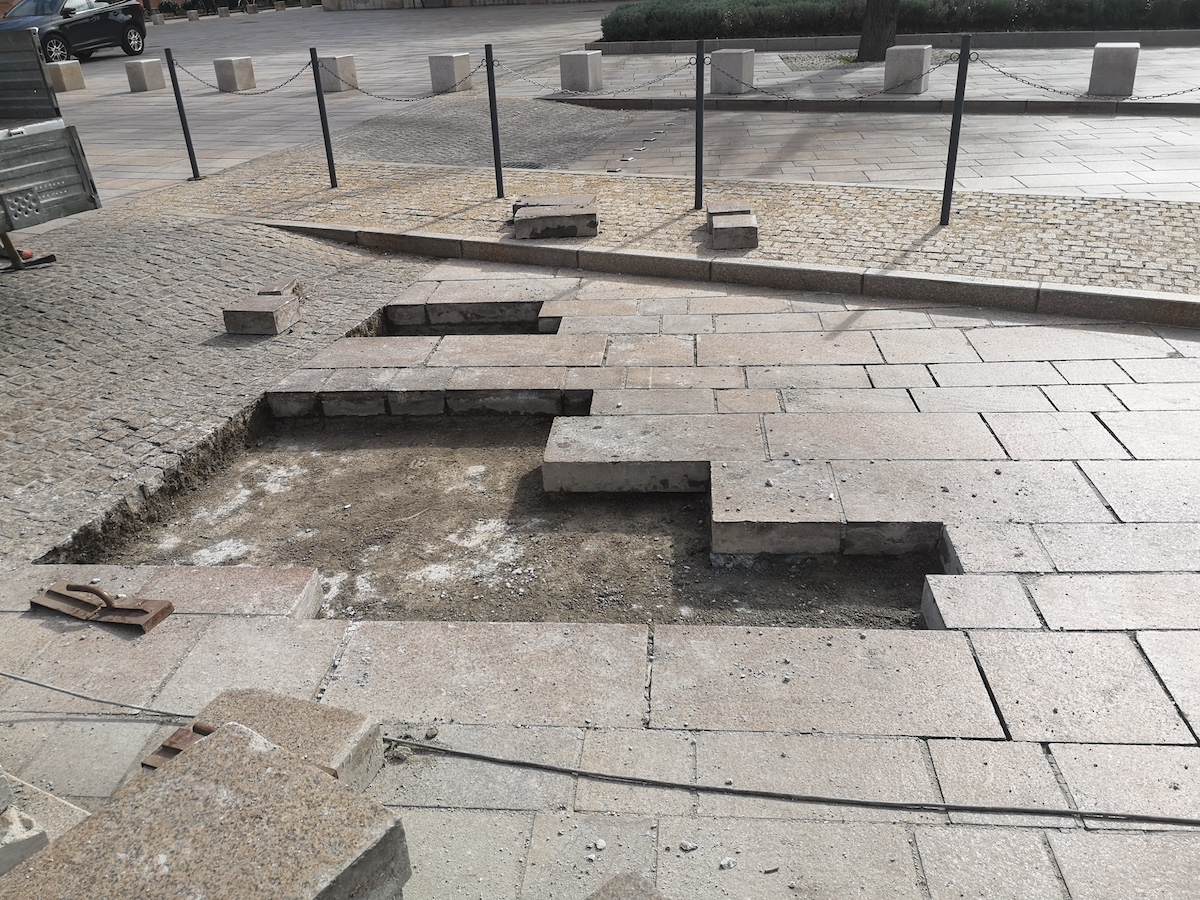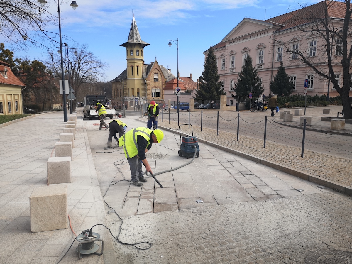 A tényleges munkavégzés mindössze néhány napot vesz igénybe összesen, viszont a kötési időt meg kell várni, amíg az autósokat visszaengedik az útra. A kivitelezőtől megtudtuk, ezúttal rugalmasabb kötőanyagot használnak a beton és a térkő között, tartósabb eredményt remélve.