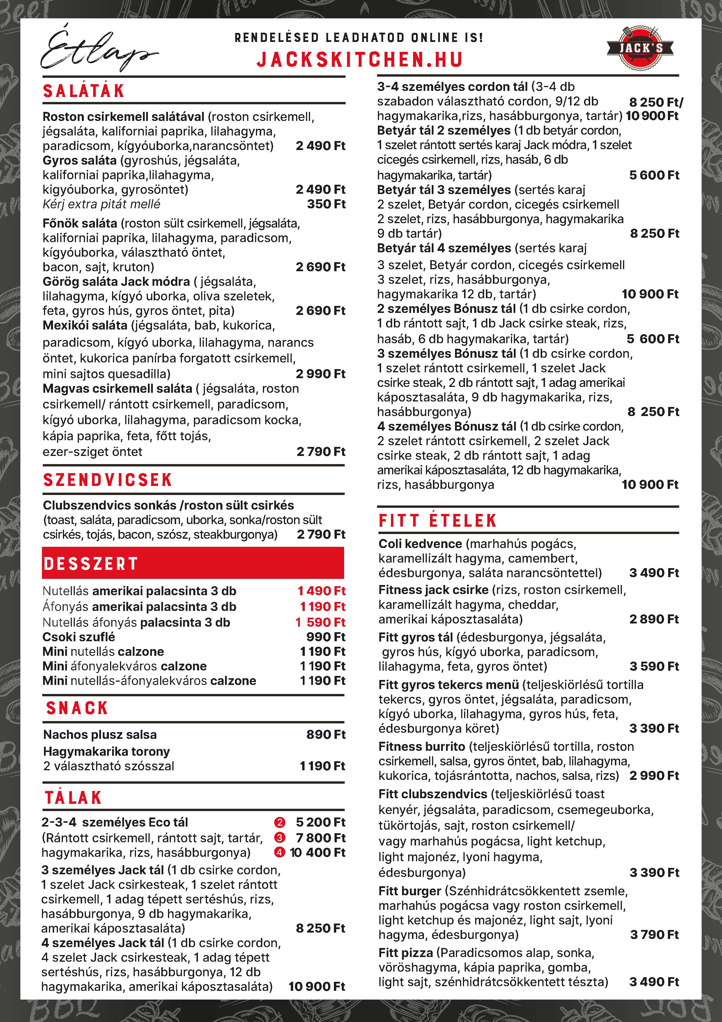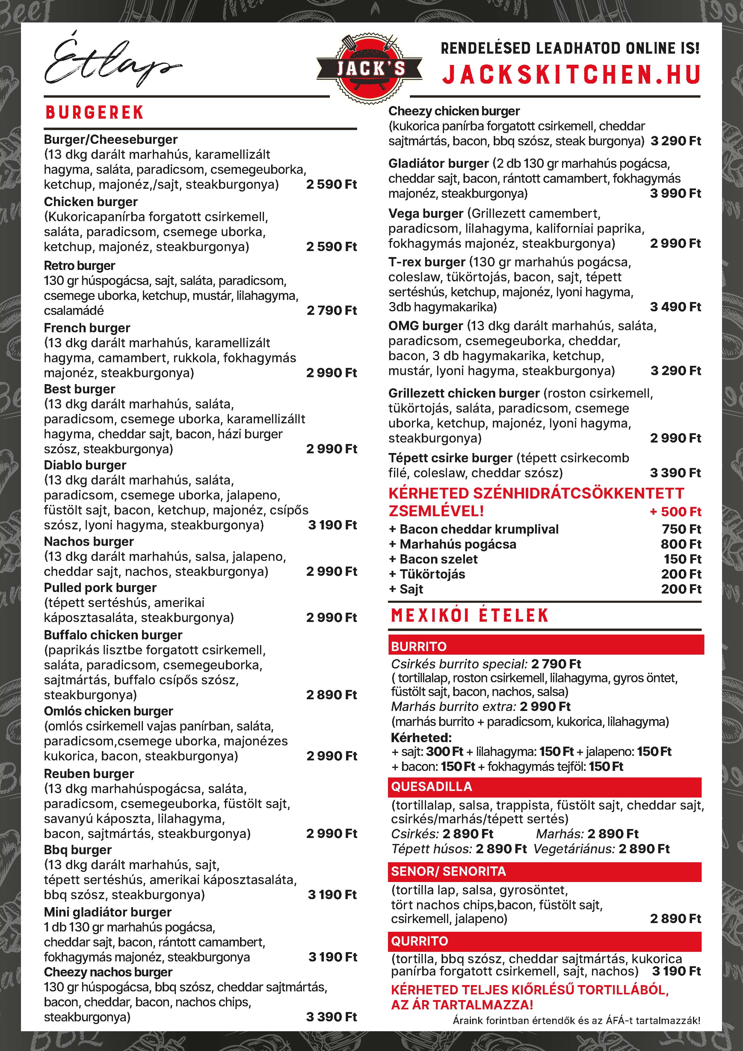 Hamburgerek - Pizzák - Mexikói ételek - Saláták - Frissensültek