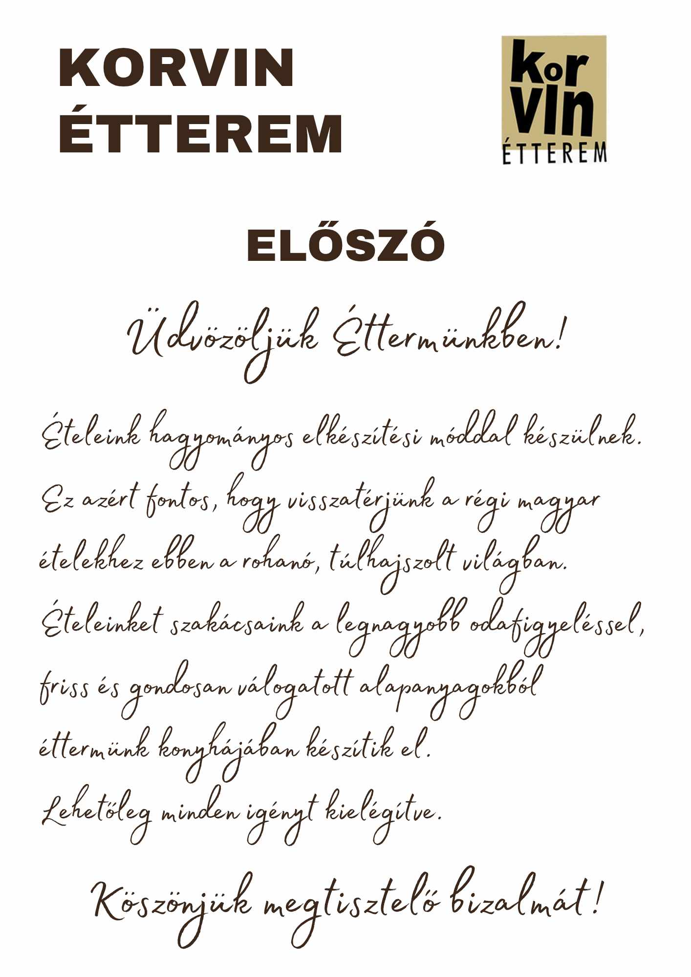 Kérjük tekintse meg megújult étlapunkat!