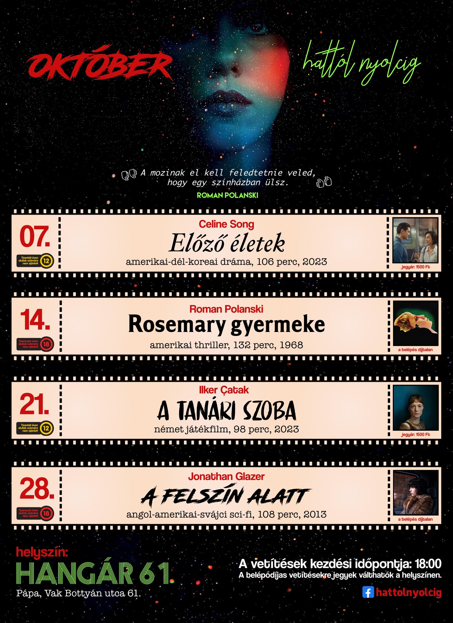 "Erre talán mondhatjuk, hogy "lesz minden" Tiszteletben tartjuk, hogy októberben borzongásra vágytok, így kétszer is horrorközeli állapotba kerülünk, amit némi romantikával ellenpontozunk, és igyekszünk összehozni egy pedagógus-kerekasztalt is abban a bizonyos szobában!"