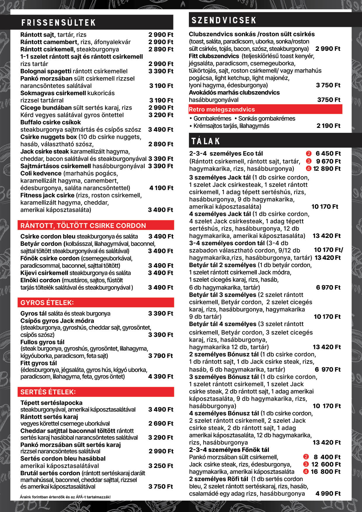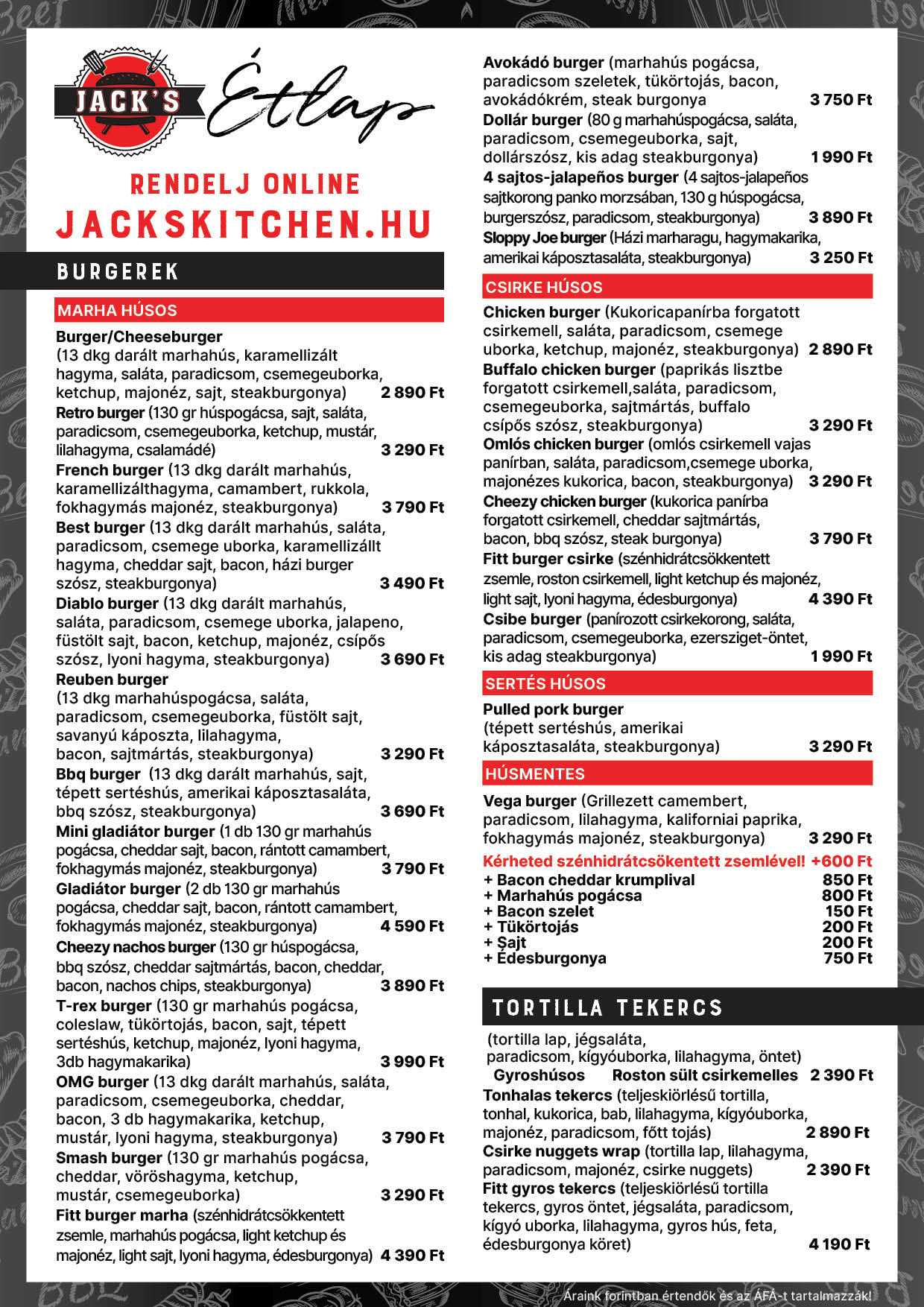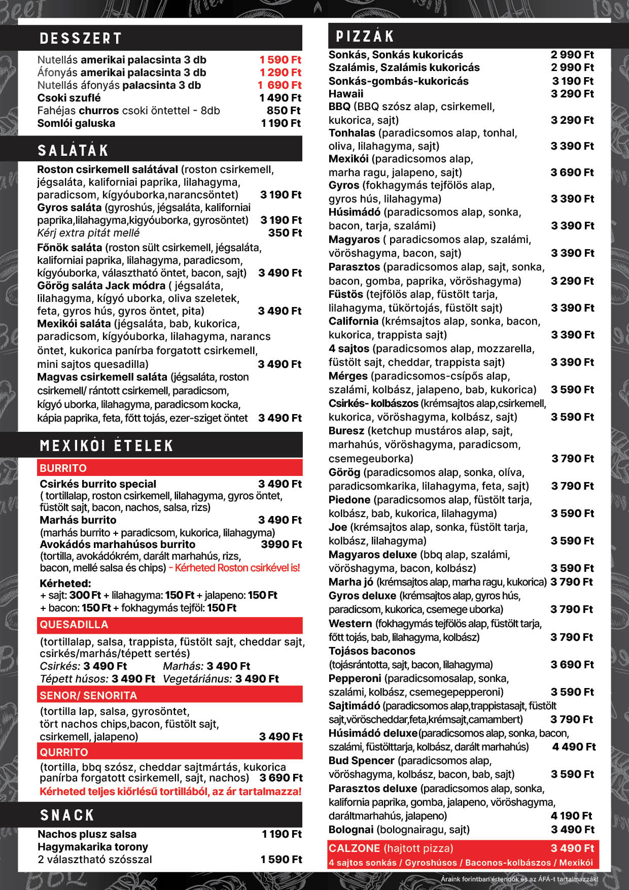 Hamburgerek - Pizzák - Mexikói ételek - Saláták - Frissensültek