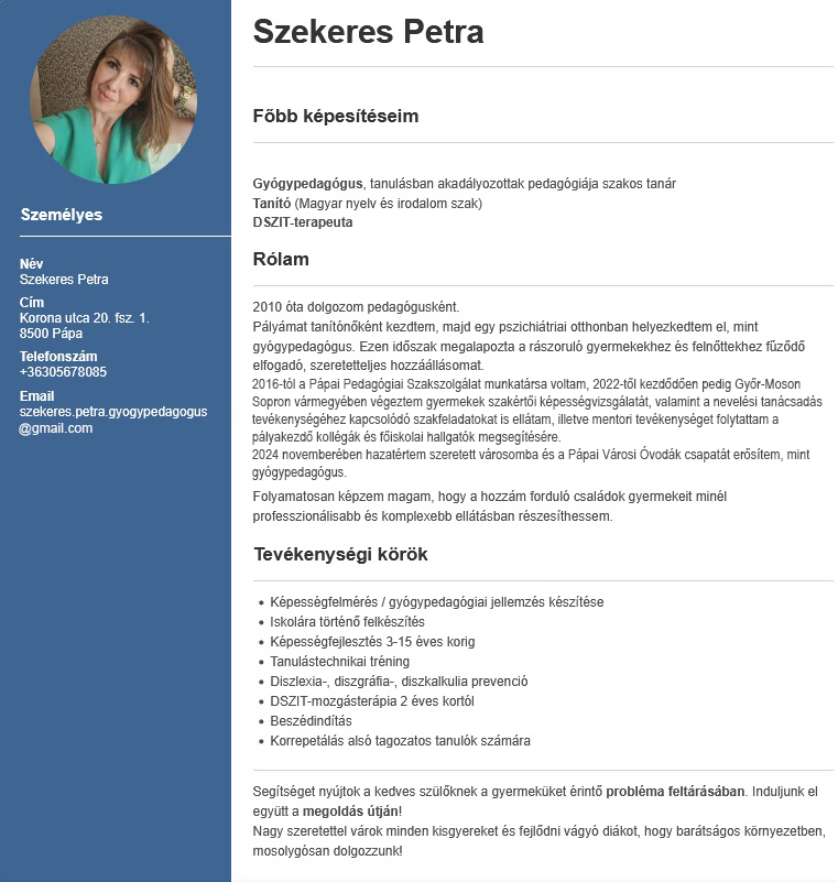 - E-mail: szekeres.petra.gyogypedagogus@gmail.com