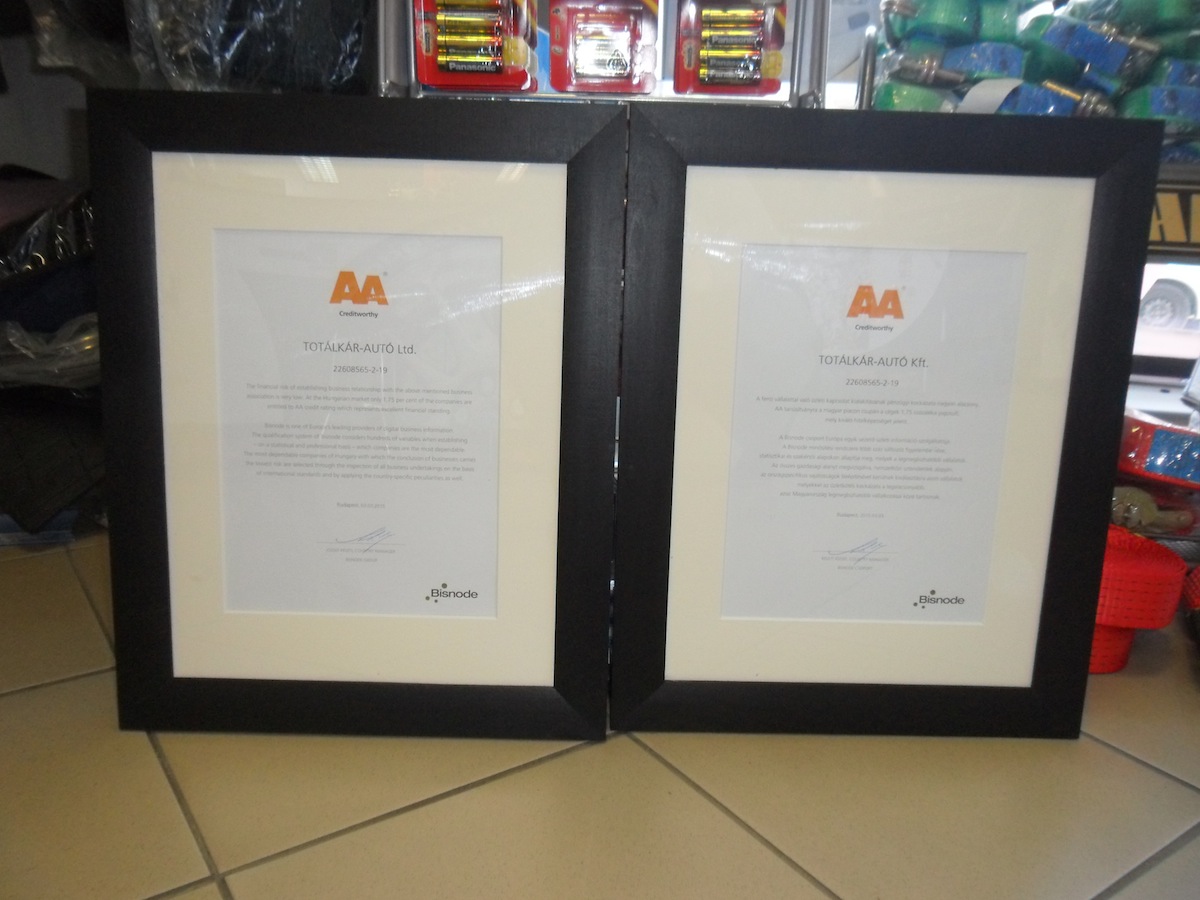 Cégünk 2018-ben is elnyerte az AA minősítést, ami azt jelenti, hogy Magyarország legmegbízhatóbb cégei közé tartozunk.