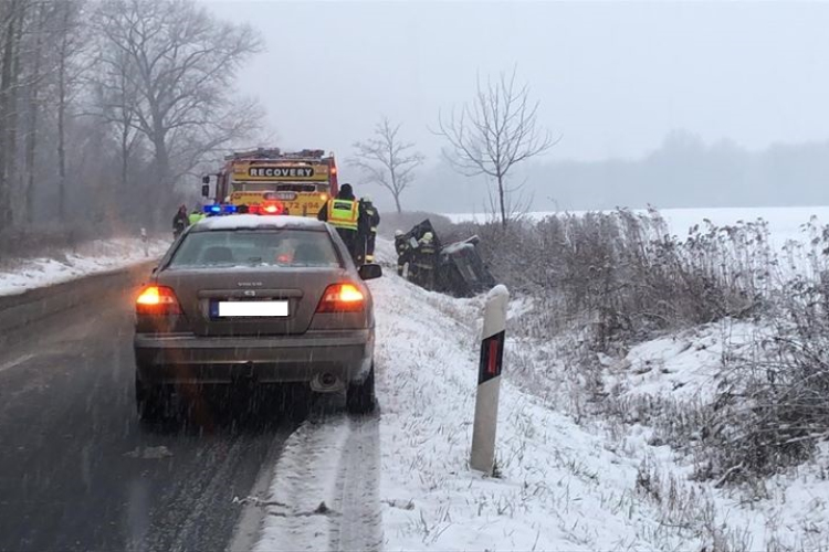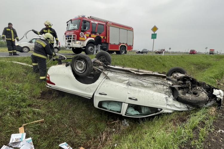 A 37-es kilométernél hajtott árokba egy személykocsi, Takácsi térségében.