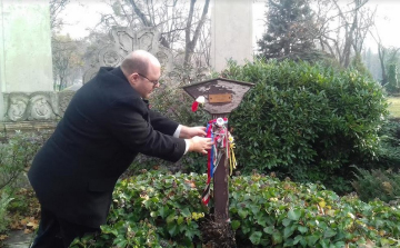 A pápai Petőfi Városbarát Egylet (PVE) önkéntesei az idei március idusán is koszorút vittek a Kálvária temetőbe Szladik János 1848/49-es honvéd tűzmester síremlékére.