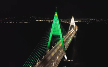 Óriás karácsonyfát varázsolt a Megyeri hídból a közút - VIDEÓ