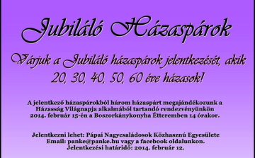 Jubiláló Házaspárok jelentkezését várja a PÁNKE