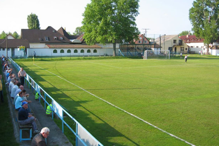 Az egykor szebb napokat látott stadiont benőtte a növényzet, a lelátó szinte ki sem látszik a gazból.