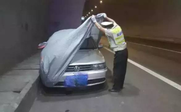 Nagy meglepetés érte a ponyvával letakart autóba bekukkantó kínai rendőröket.