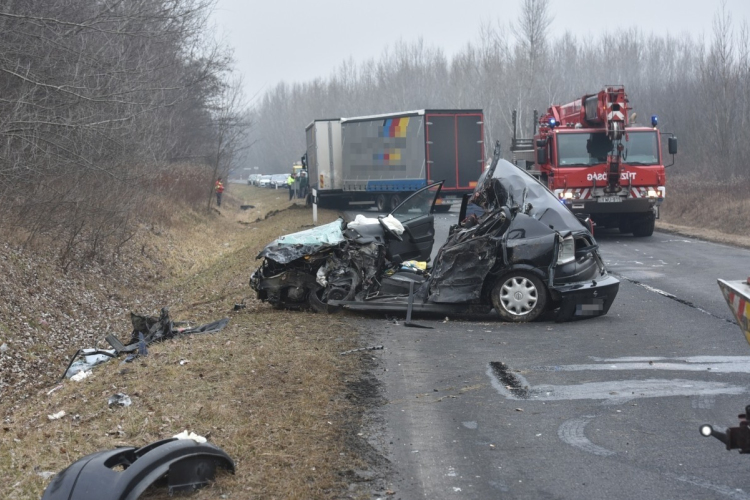 Kamion és személyautó ütközött Győrszemerénél, az utat teljesen lezárták!