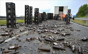 Csaknem harminc raklap sör borult az M35-ös autópályára Debrecen határában hétfőn kora délután, az út érintett szakaszát lezárták a rendőrök