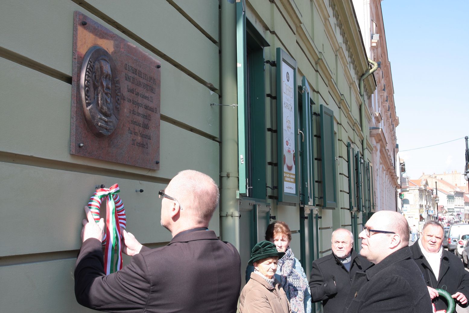 Az emléktáblánál Kerecsényi Zoltán egyleti ügyvivő, önkormányzati képviselő tartott rövid ismertetést a 125 éve történtekről, majd dr. Áldozó Tamással, Pápa város polgármesterével elhelyezték a tisztelet koszorúját. Mellettük koszorút helyeztek el a pápai Honvéd Bajtársi Egyesület, illetve a helyi Kertbarát Népfőiskola képviselői is, hiszen tudniillik, hogy Kossuth Lajos az 1848–49-es szabadságharc idején a Honvédelmi Bizottmány elnöke is volt, valamint nagy természetszerető, kertbarát hírében is állt, herbáriumát értékes jegyzeteivel együtt 1895 óta a Magyar Nemzeti Múzeum növénytani osztálya őrzi.