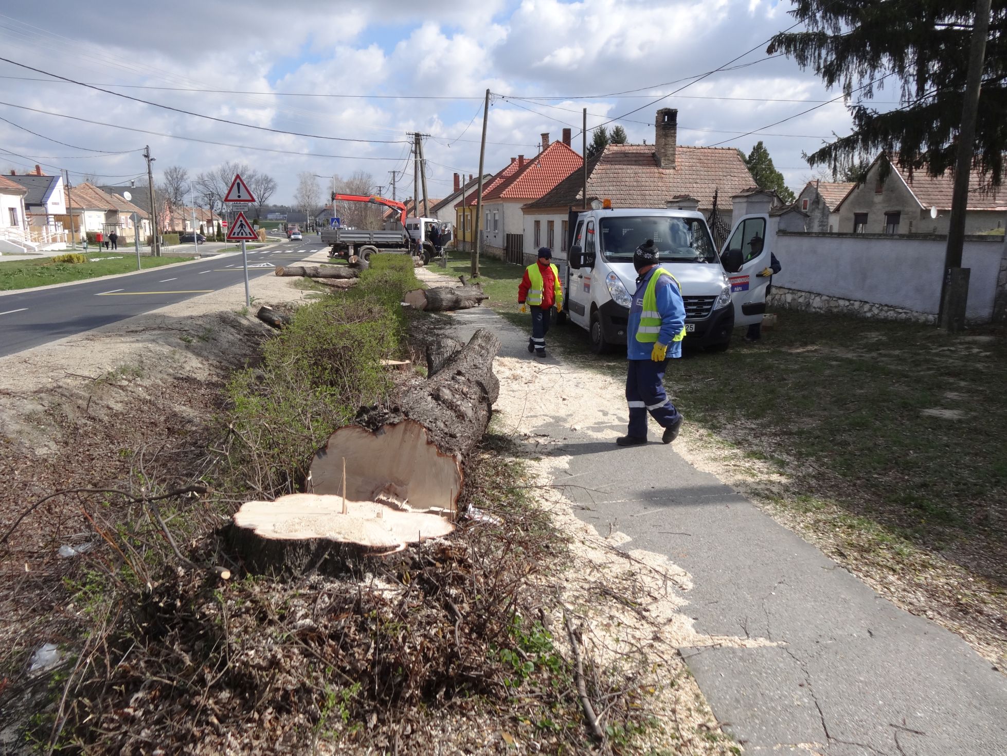 A páratlan oldalon kivágták a túlnőtt, veszélyessé vált fákat, majd újakat ültettek, most pedig a páros oldalon végeznek hasonló beavatkozást. Máté István önkormányzati képviselő örömét fejezte ki, hogy hatvan év után megújul és egységes képet kap a településrész főutcája. A páros oldalon ugyan a felsővezetékek nem voltak veszélyben, de a túlnőtt egyedek így is okoztak problémát, korábban az egyik fa például rádőlt az egyik házra, továbbá a fák cseréje nyomán tágul tér az utcában és egységessé is válik a kép - magyarázta a képviselő.