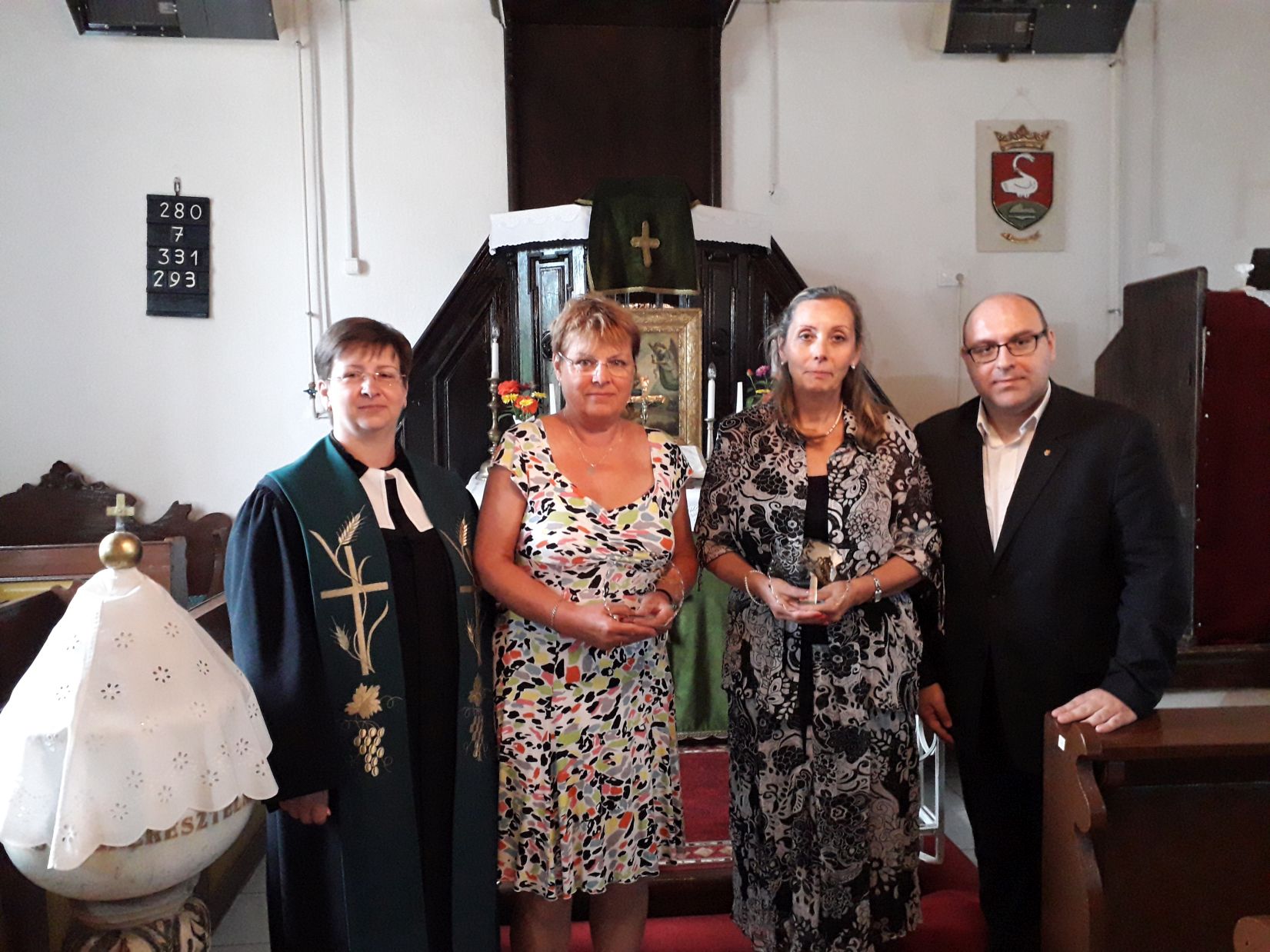 A régi, szép egyházi énekekkel gazdag istentisztelet végén átadásra kerültek az EpVE Szalóky Sámuel-emlékplakettjei a nemesszalóki evangélikus gyülekezet és a helyi önkormányzat számára.