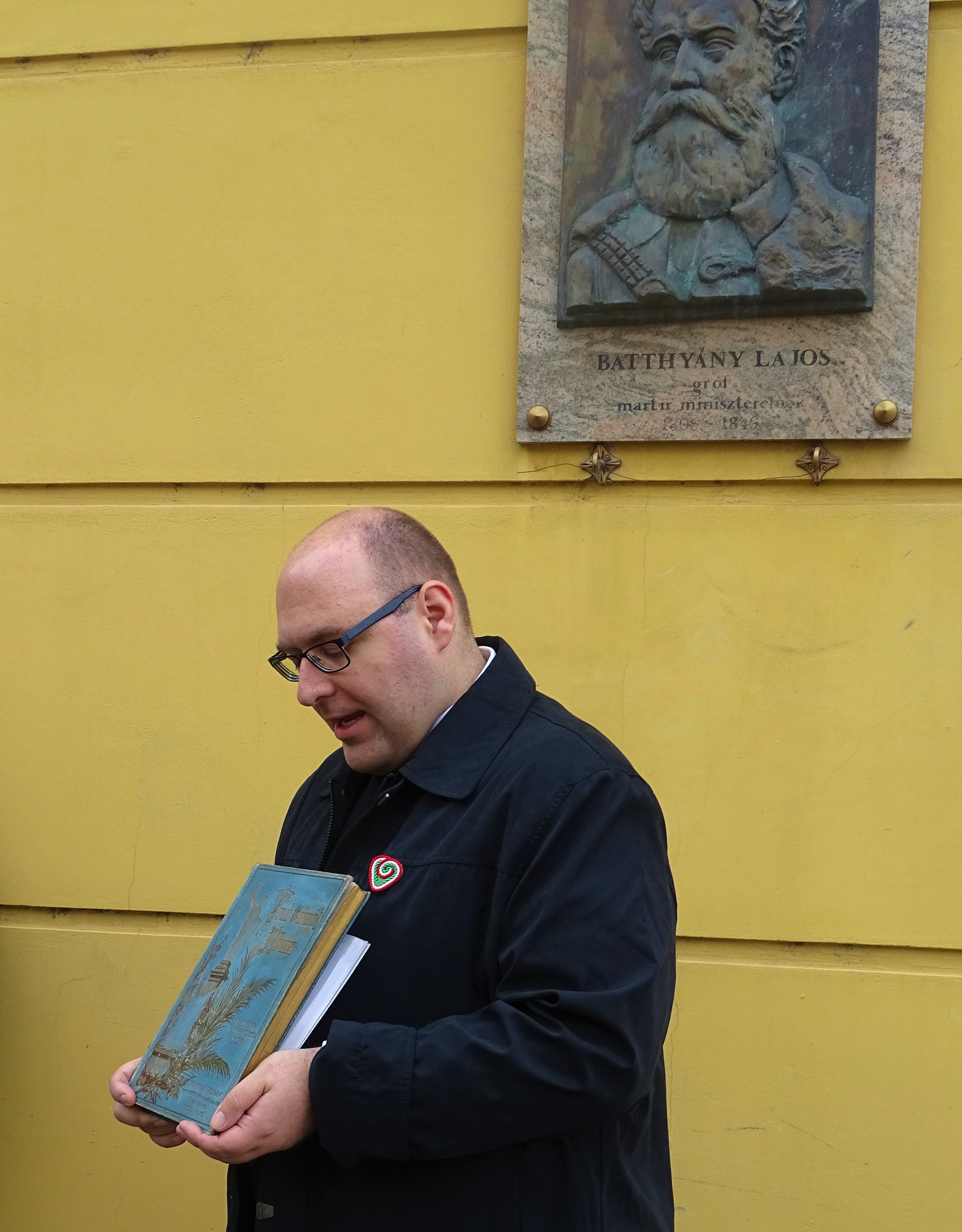 Kerecsényi Zoltán ezúttal elhozta a relief előtt megjelenteknek azt a gyűjteményében féltve őrzött, „Nagymagyarország kiváló történetírója, a lánglelkű tanár”, Varga Ottó (1853-1917) szerkesztette „Aradi vértanúk albuma” címet viselő, immár 125 éves régi, vaskos kötetét, melynek „Fátyolos idők” című fejezetéből előbb felolvasta azt a részletet, amely Batthyány elítéltetését, utolsó óráit és kivégzését idézték; majd szintén az említett antik kiadványból Palágyi Lajos (1866-1933) zsidó származású magyar poéta megrendítő költeményéből osztott meg egy szakaszt, ami az aradi mártírok példaadásának állít emléket; végül pedig Batthyány Lajos feleségéhez, Zichy Antóniához fogalmazott búcsúleveléből ismertetett egy elgondolkodtató töredéket.