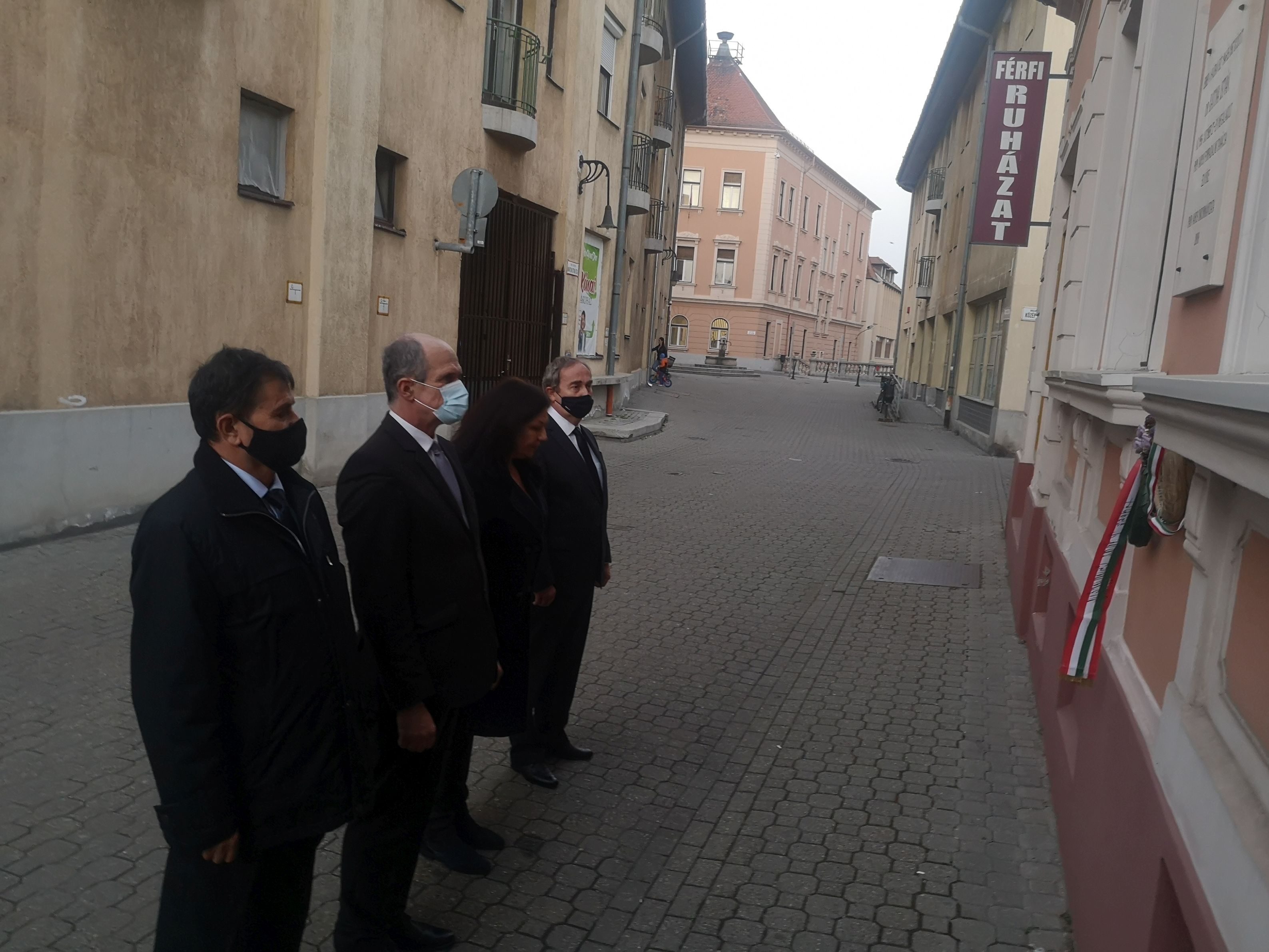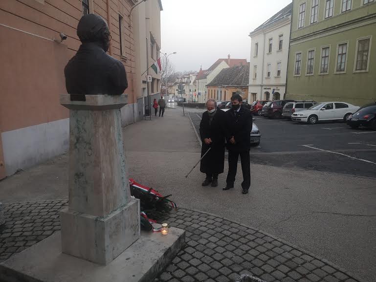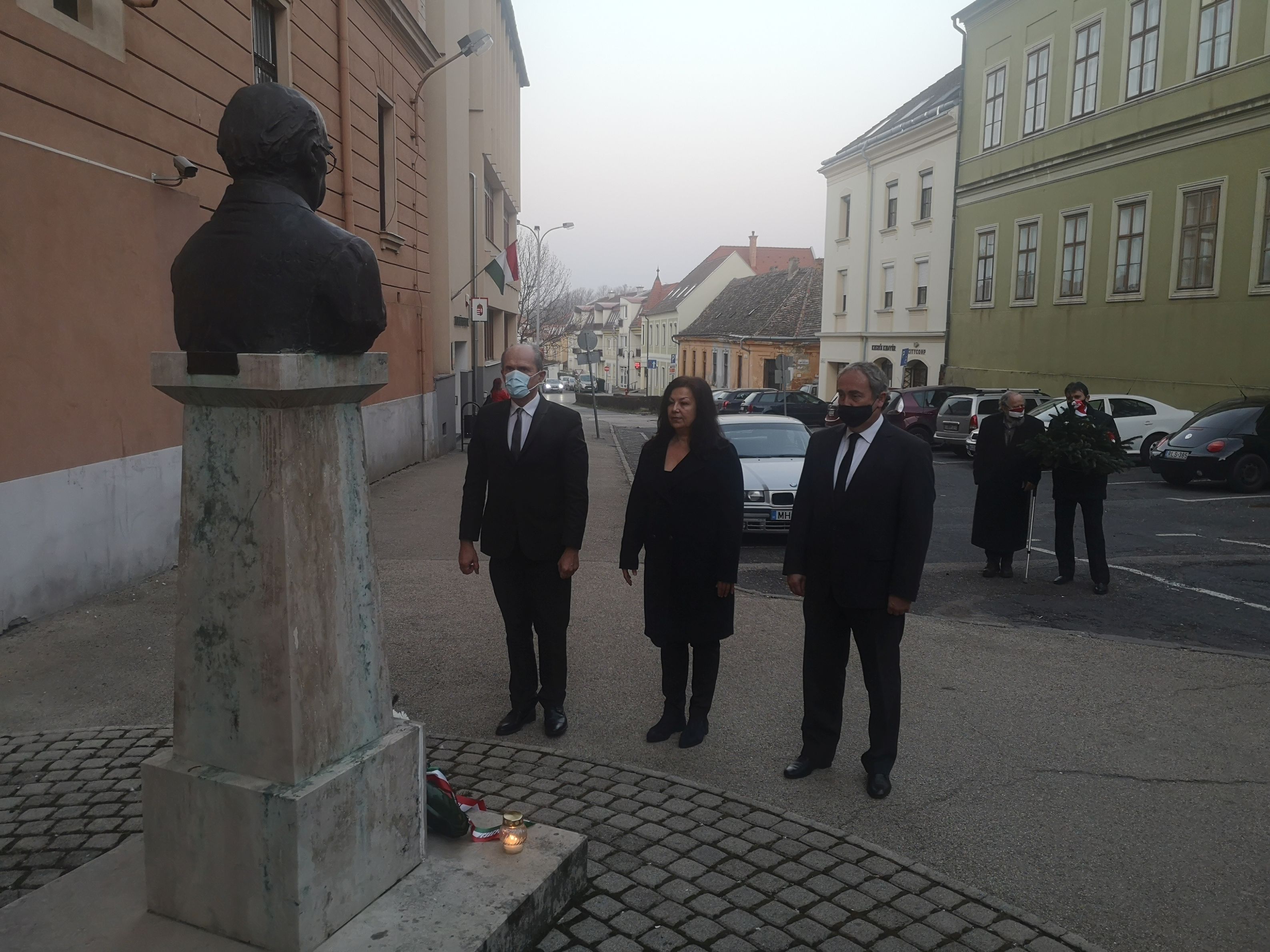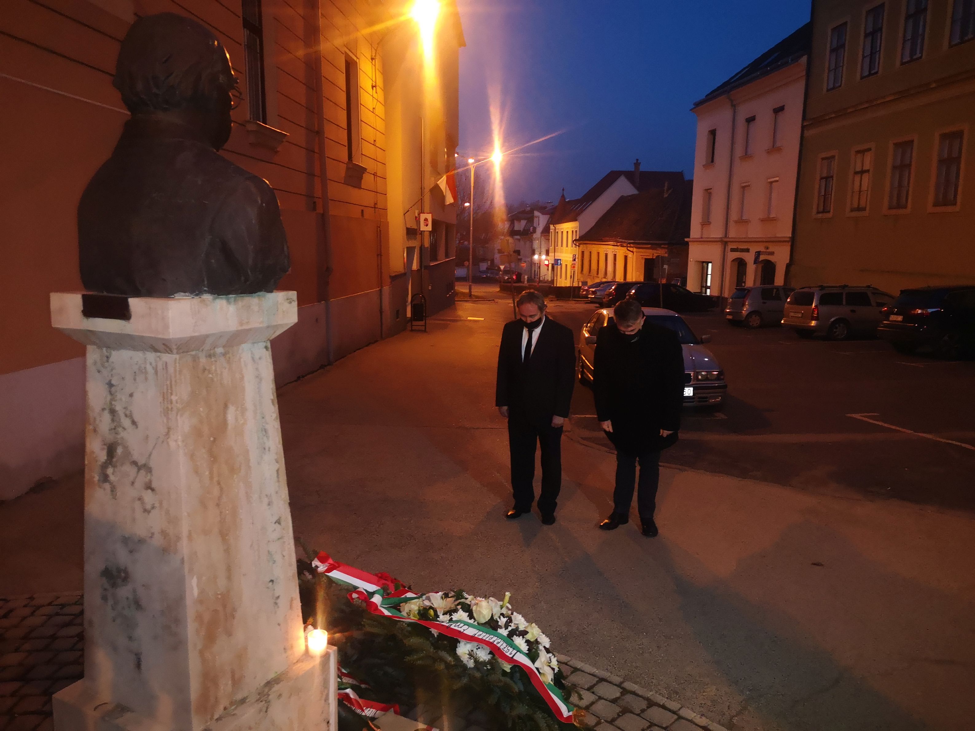 A Fidesz nevében dr. Kovács Zoltán országgyűlési képvidelő, valamint Szabadkai Verita és Venczel Csaba önkormányzati képviselők helyeztek el koszorút az egykori pápai polgármester, országgyűlési képviselő szobránál, valamint dr. Katona István, Pápa város forradalmi tanácsának elnökének emléktáblájánál.