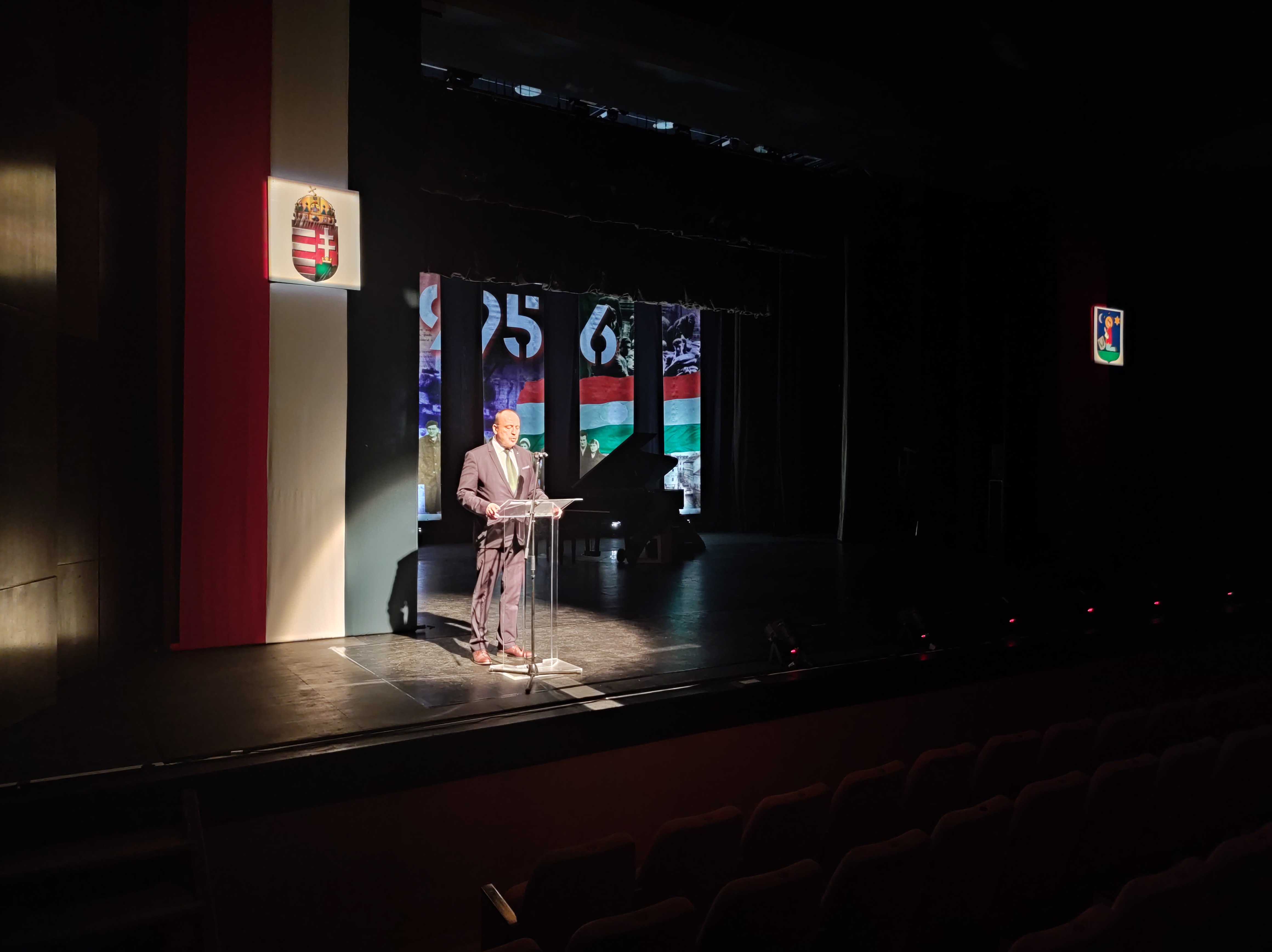 Kiss Zoltán Deák Ferenc utcai, majd dr. Katona István Márton István utcai emléktáblájának koszorúzását követően a megemlékezés a JMSZK színháztermében folytatódott.Németh Zsolt, az Országgyűlés Külügyi Bizottságának elnöke mondott emlékbeszédet. A szónok hangsúlyozta, nem szabad elfelejteni azt, hogy 1956-ban sokan az életüket adták a mai szabad világunkért. Megállították a szovjet birodalom hadseregét, megroppantották a kommunizmus gerincét annyira, hogy már nem tudott belőle felegyenesedni.