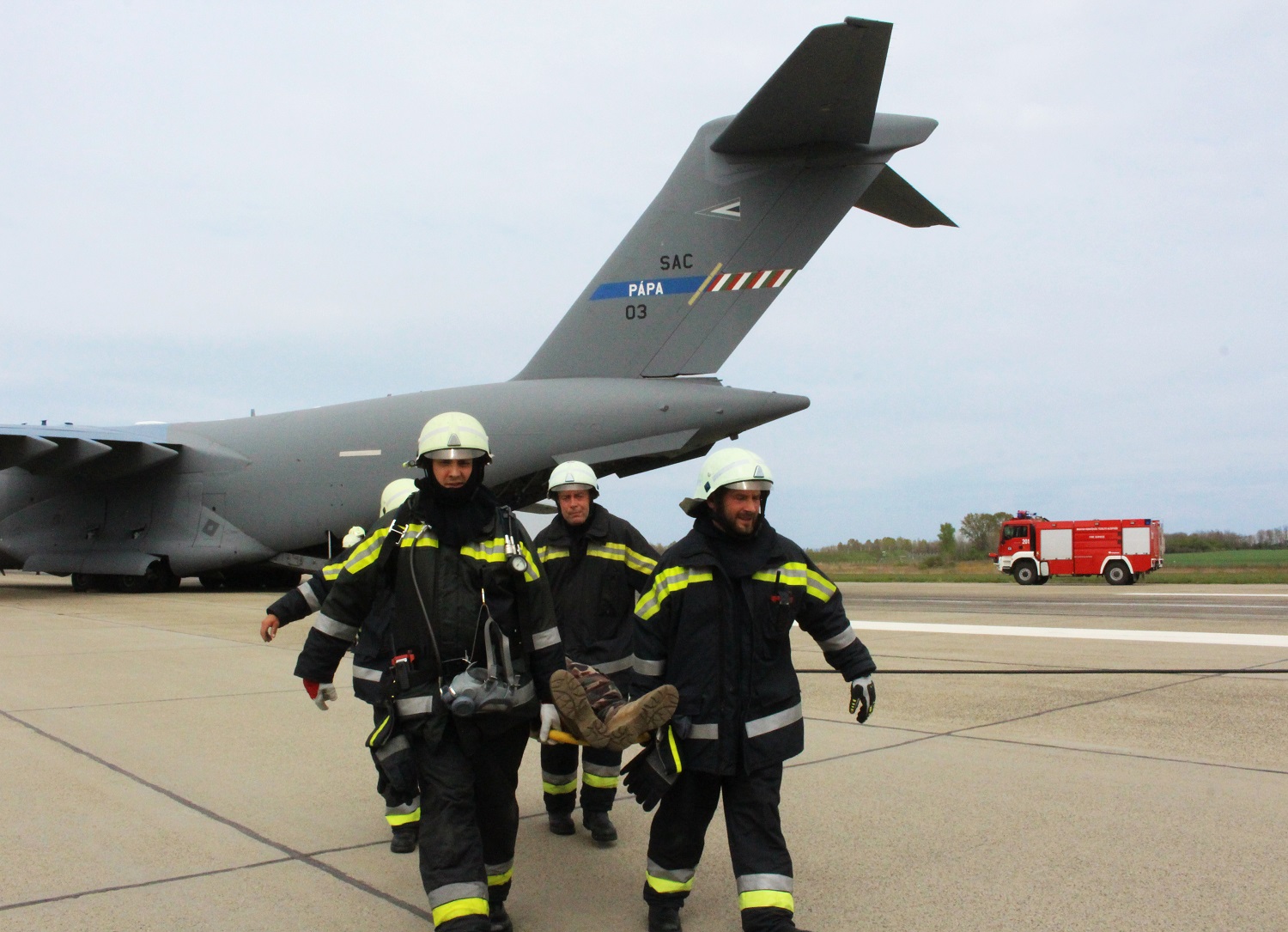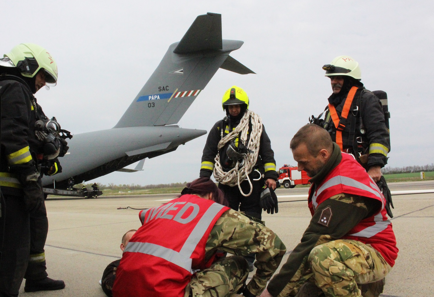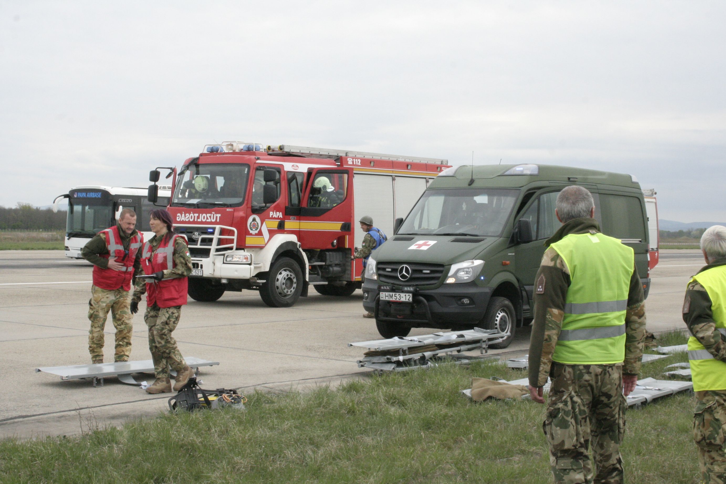 Gyakorlatot tartottak az MH Pápa Bázisrepülőtéren, amely szerint balesetet szenvedett az egyik Pápán állomásozó C-17-es szállítógép, ennek következtében a gép fedélzetén több tucat személy megsérült.