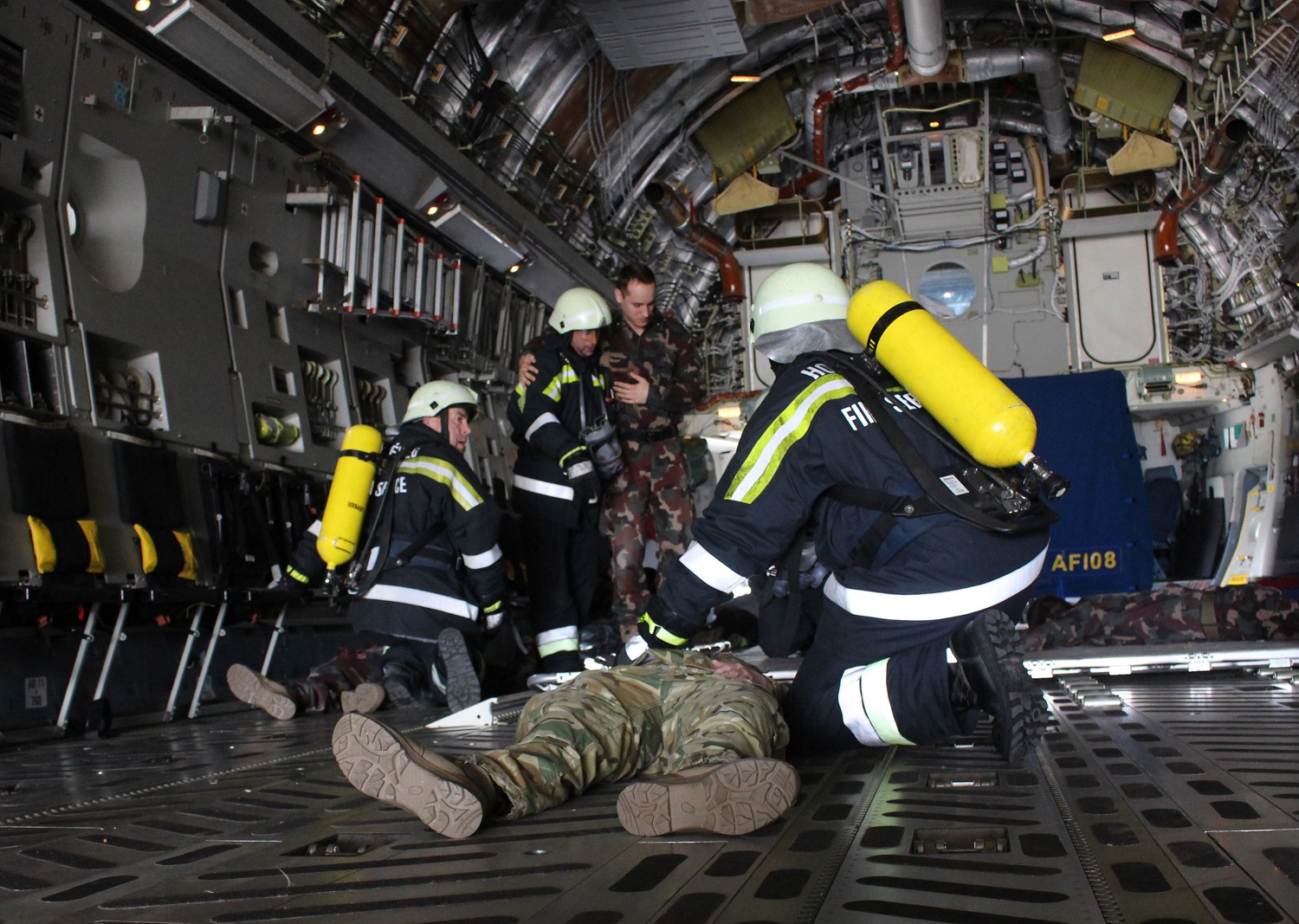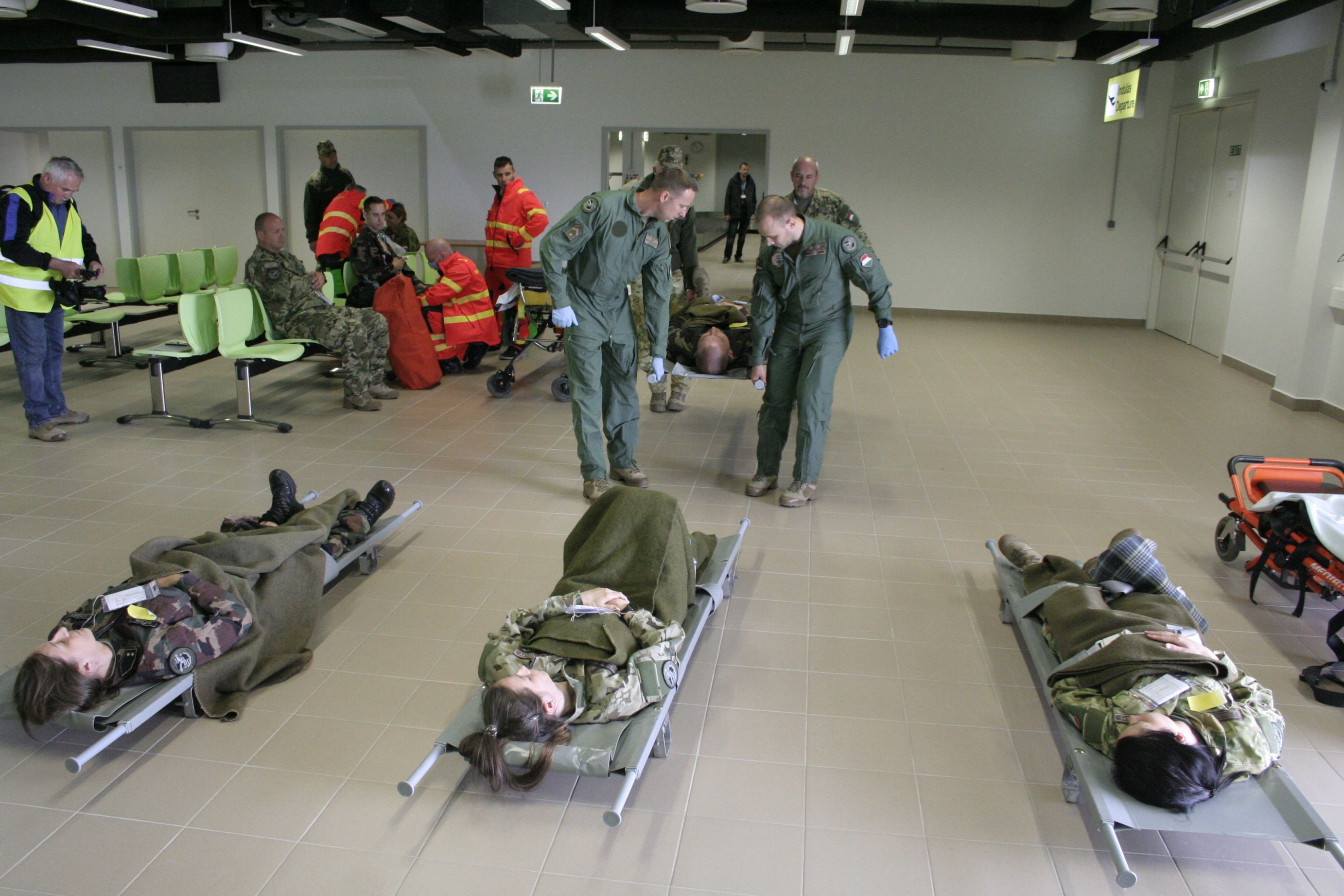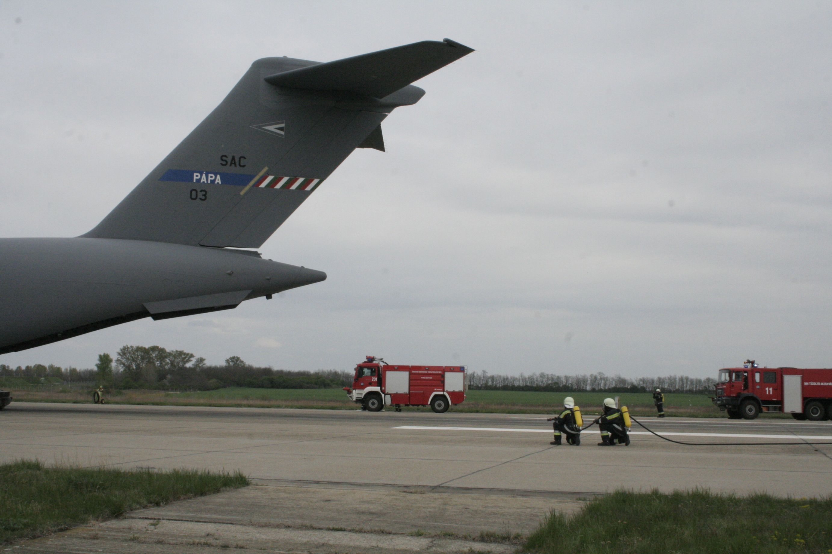 Gyakorlatot tartottak az MH Pápa Bázisrepülőtéren, amely szerint balesetet szenvedett az egyik Pápán állomásozó C-17-es szállítógép, ennek következtében a gép fedélzetén több tucat személy megsérült.