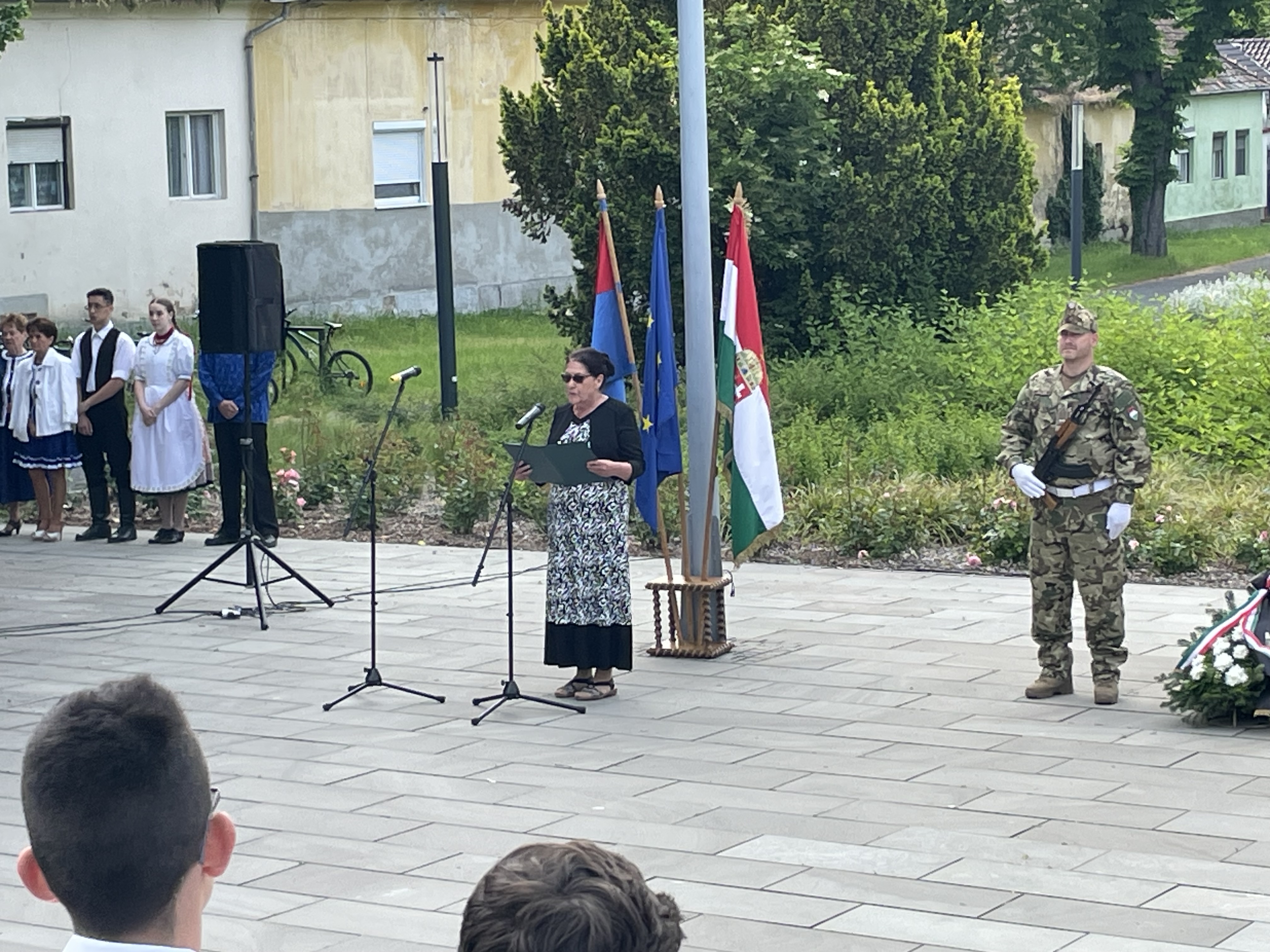 Az Országzászló emlékműnél gyűltek össze az emlékezők a trianoni békediktátum 102. évfordulója alkalmából rendezett megemlékezésen, amelyen dr. Vaitsuk Mária önkormányzati képviselő mondott beszédet.