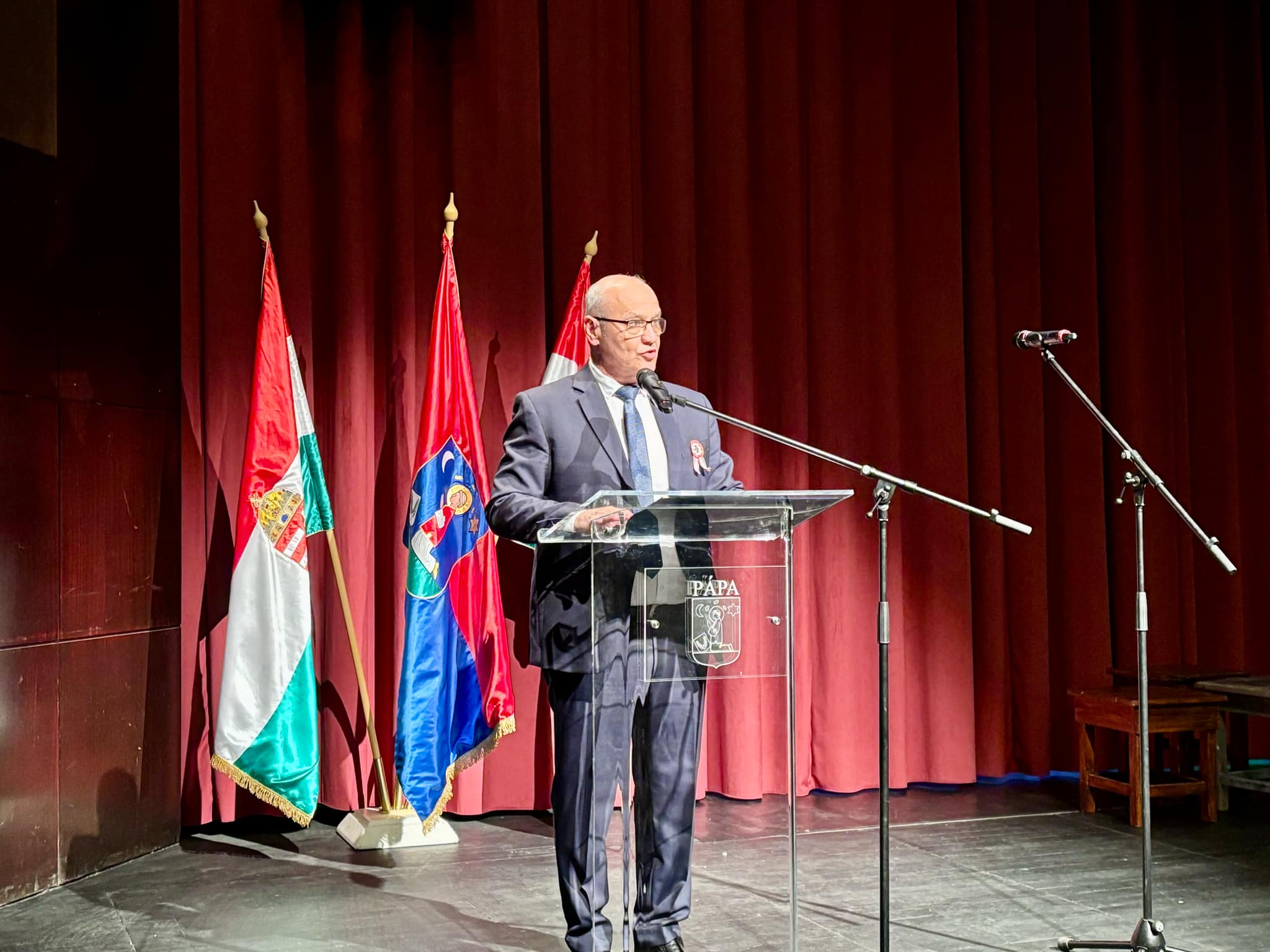 Kiemelte: emlékezni érkeztek ma a pápaiak, nem politizálni és nem programot hirdetni. Egyszerűen azért, mert akárhányan is vagyunk itt a teremben, ugyanolyan színű kokárdát tűztünk ki, ugyanazt a trikolort lobogtatjuk és ugyanúgy valljuk: "Legyen béke, szabadság és egyetértés".