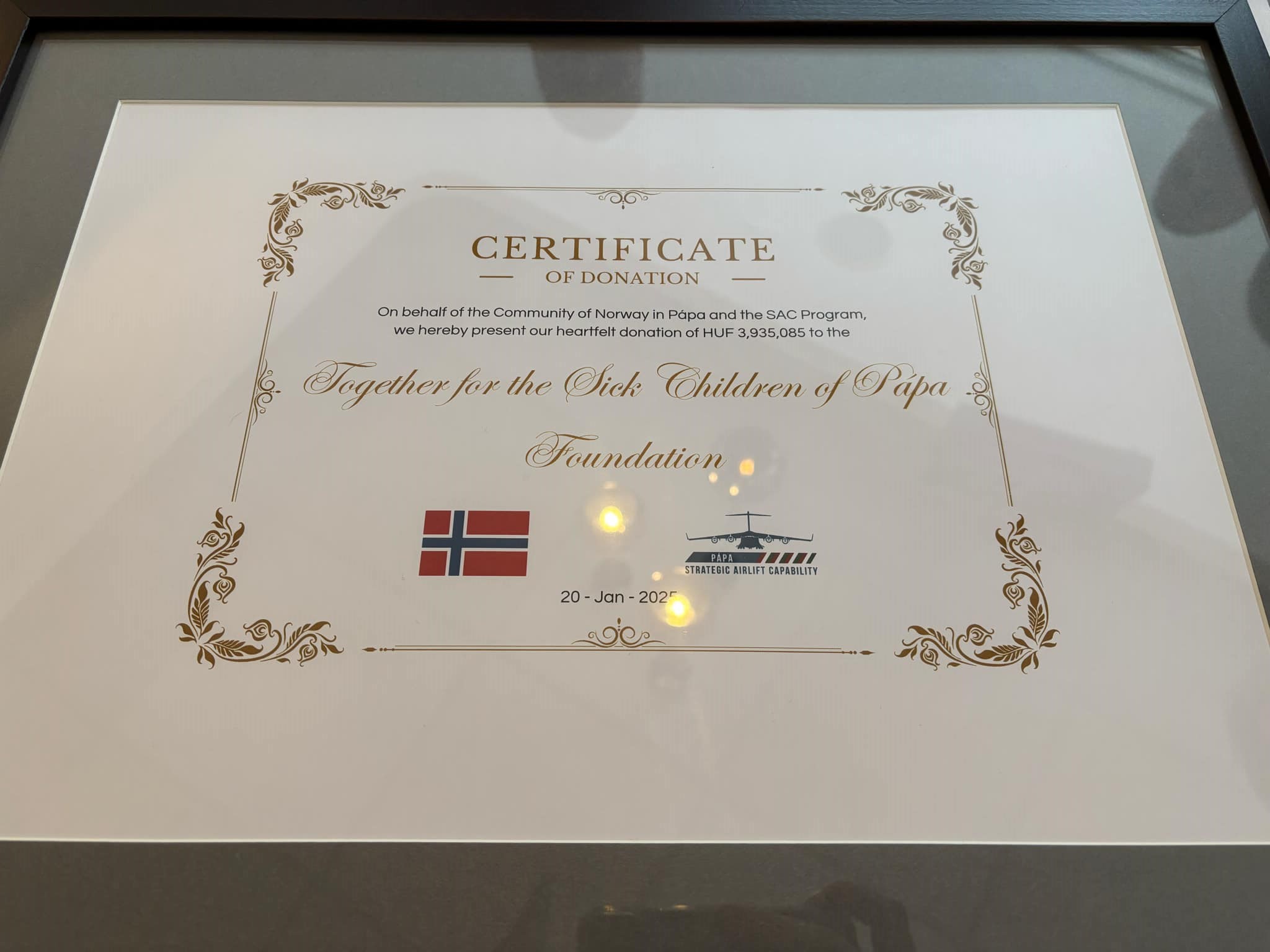 4 millió forintot adományoztak a norvég feleségek, a pápai beteg gyermekeket támogató alapítványnak