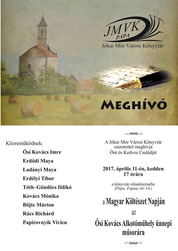 17 órától a Jókai Mór Városi Könyvtárban folytatódnak a költészet napi programok: