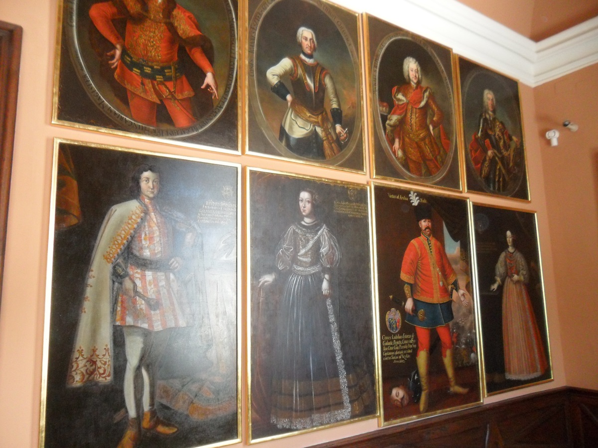 A festményeket az idei évben aláírt szerződés révén szállítjuk vissza, eredeti helyükre, a pápai kastélyba. Jel pillanatban az eddig itt lévő festmények mellett 15 új képet állítottunk ki, amellyel teljessé vált a szorosabban vett Ősök Csarnoka, a kastély középső szárnyának Nádor terem előtti folyosószakasza, amely így 26 festményt foglal magába. Emellett az enteriörterekben újólag öt festményt helyeztünk el. Ezek közül kiemelendő Esterházy Károly arcképe a Nádor terem melletti volt nagy könyvtár nyugati falán, amelyet eredeti helyére tudtunk visszahelyezni. A Múzeum saját gyűjteményébe tartozó festményeket is állított ki.
