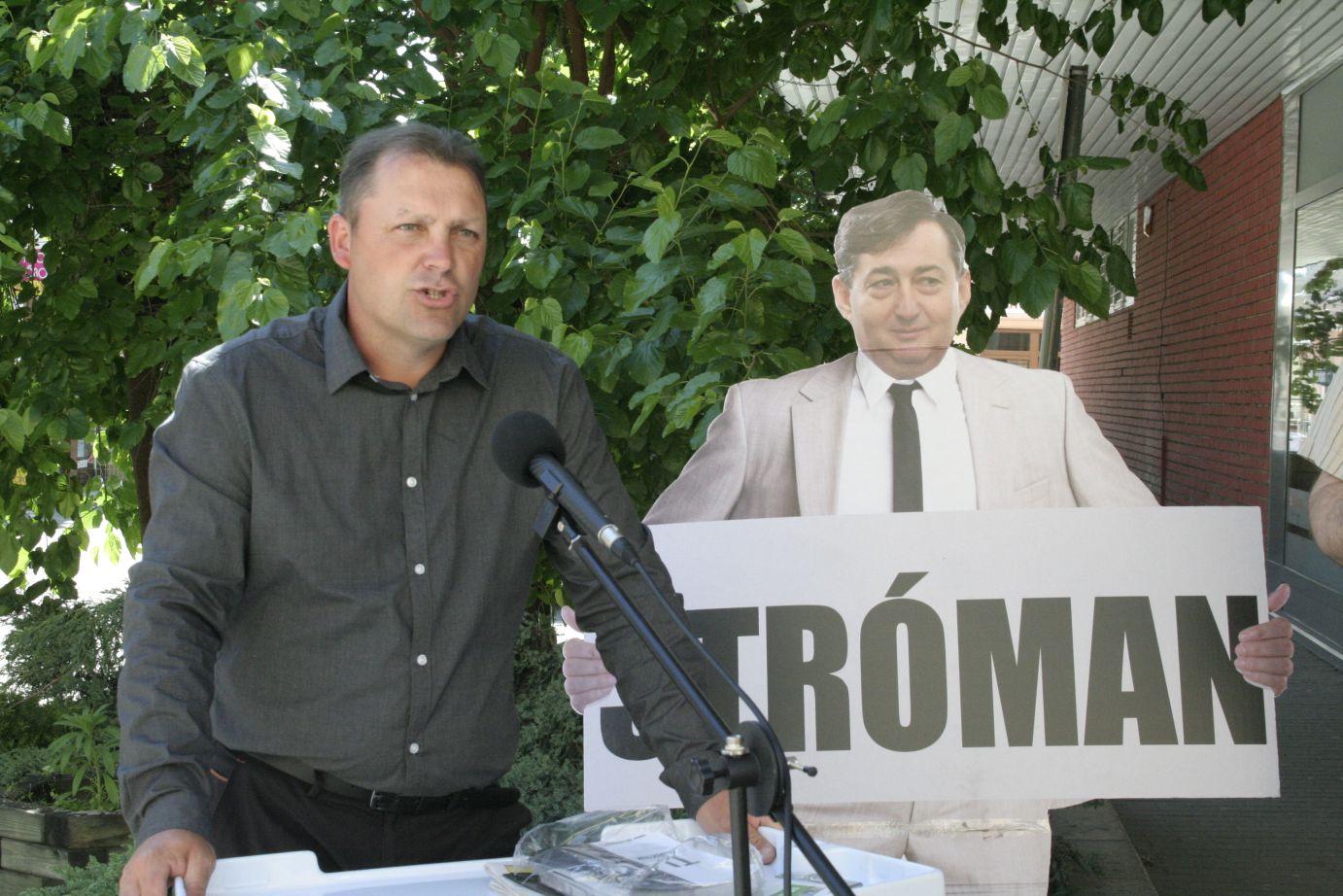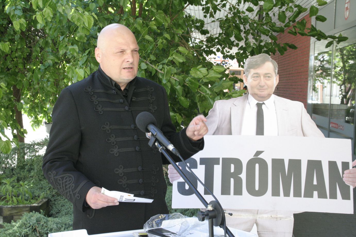 Papír alapon, jókora "stróman" felirattal érkezett a felcsúti polgármester, üzletember, teljes alakú mása városunkba.