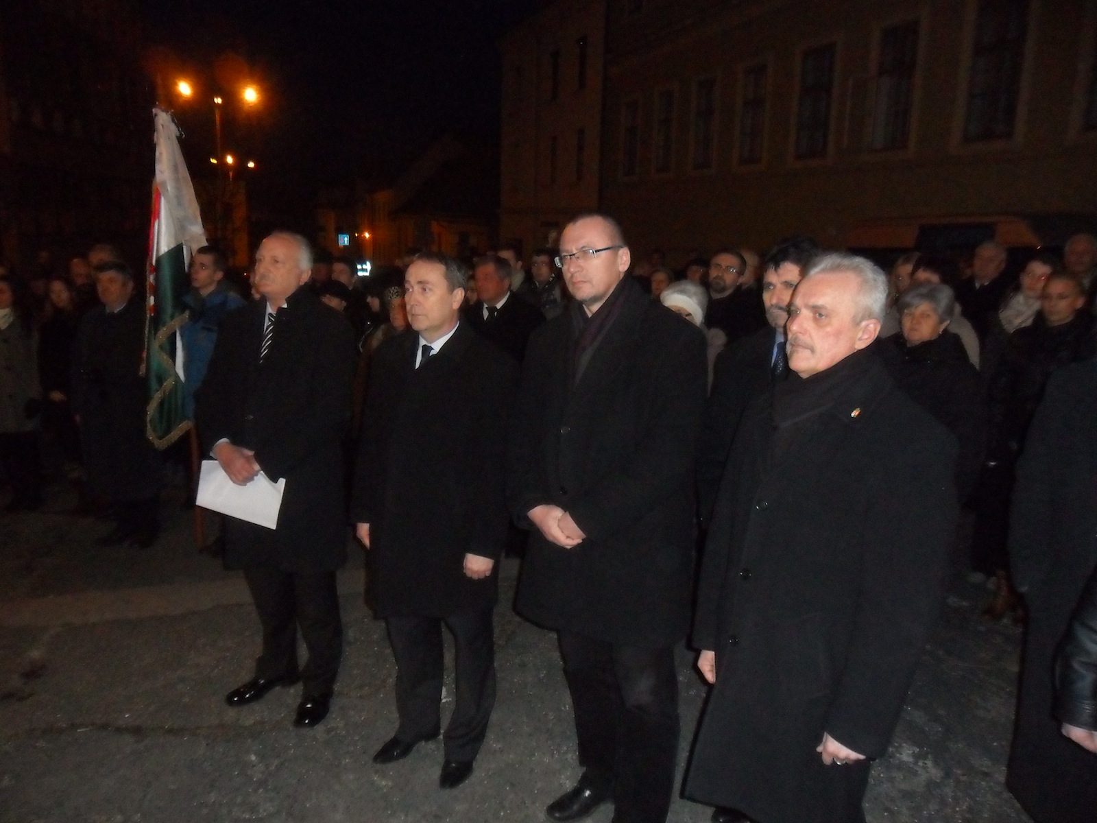 A kommunista diktatúra áldozatainak emléknapján a Himnusz hangjait követően Gyimóthy László szavalata vezette be az ünnepi beszédet. Rabi István, a Pápai Polgári Kör elnöke elmondta, a kommunista diktatúra áldozatainak emléknapját az első Orbán-kormány vezette be azzal a szándékkal, hogy ne feledjük a kegyetlen kommunista terrort és annak áldozatait. - Ezeknek a megemlékezéseknek az áldozatok előtti tiszteletadás mellett részemről a kettős mérce megszűntetésében való segítségnyújtás is társul. Arról a kettős mércéről beszélek, amely a mai napig működik a nácizmus és a kommunizmus bűneinek megítélésekor - fogalmazott Rabi István.