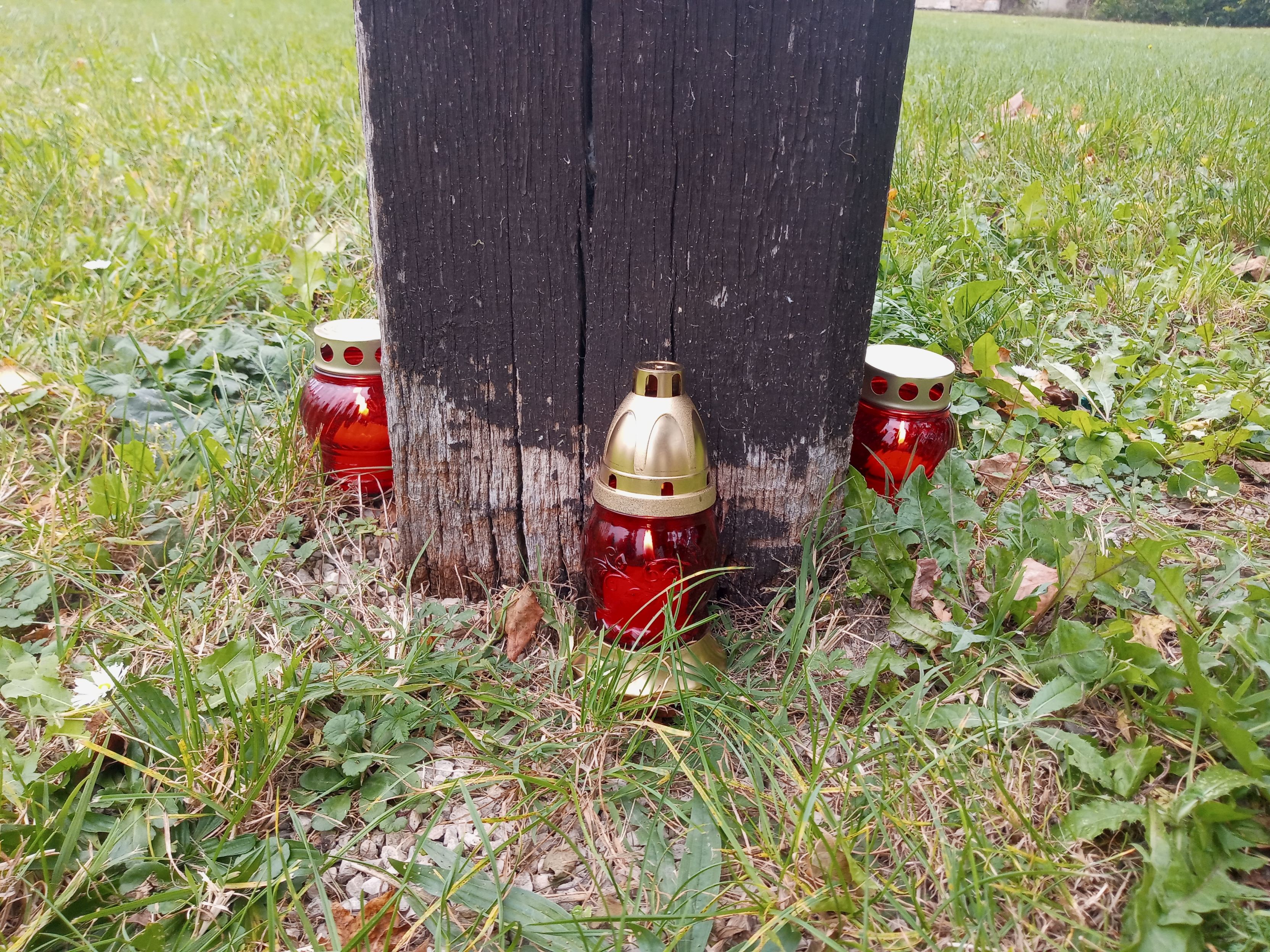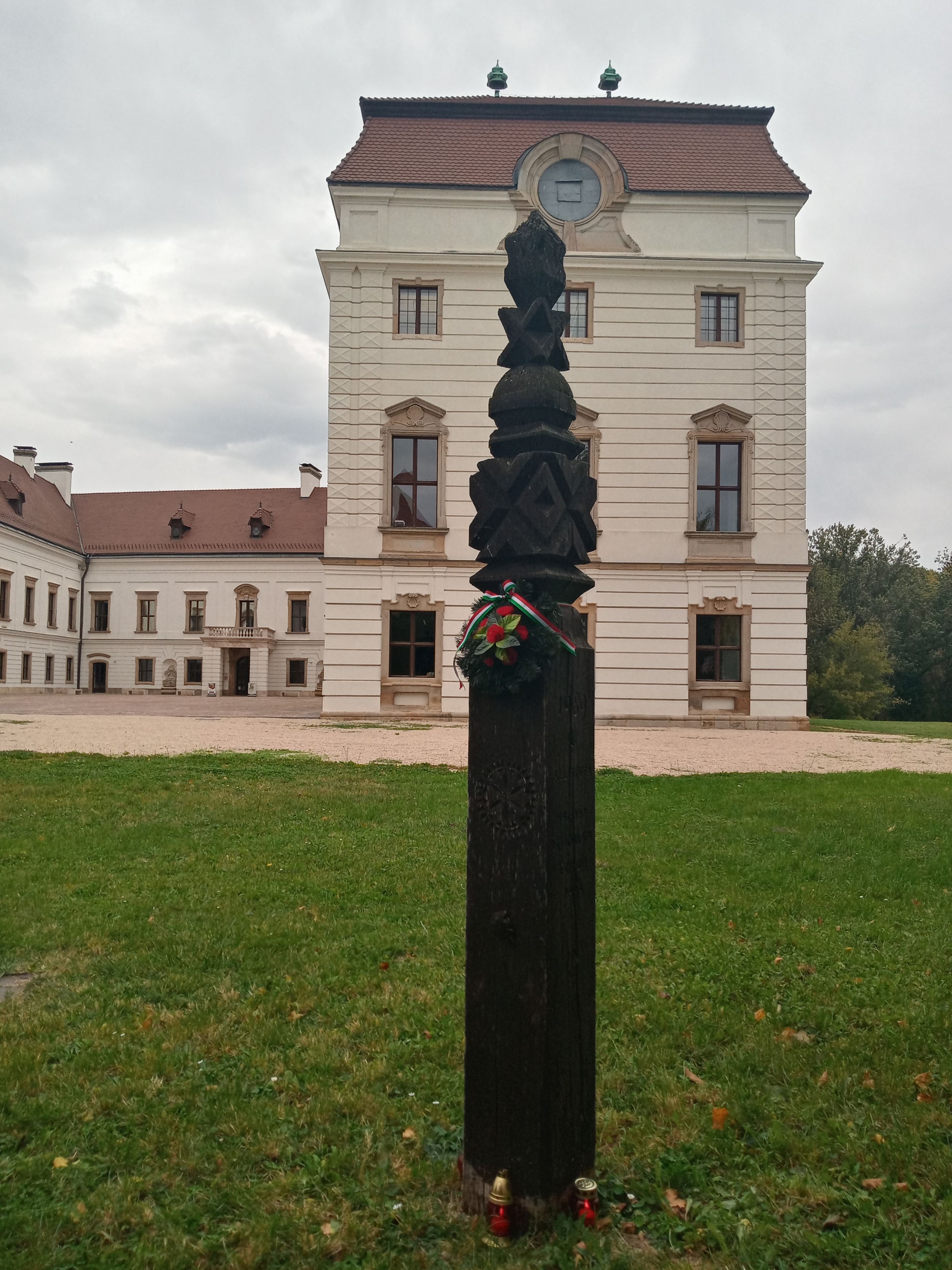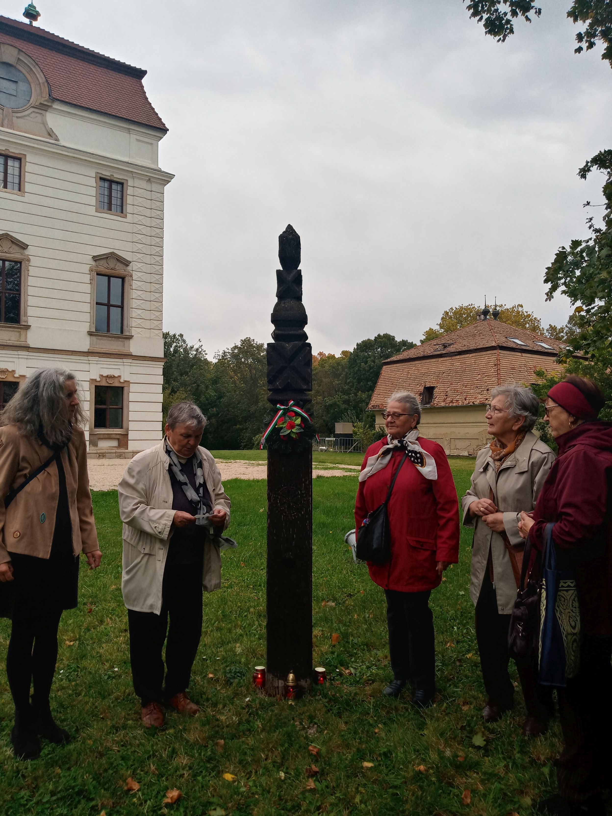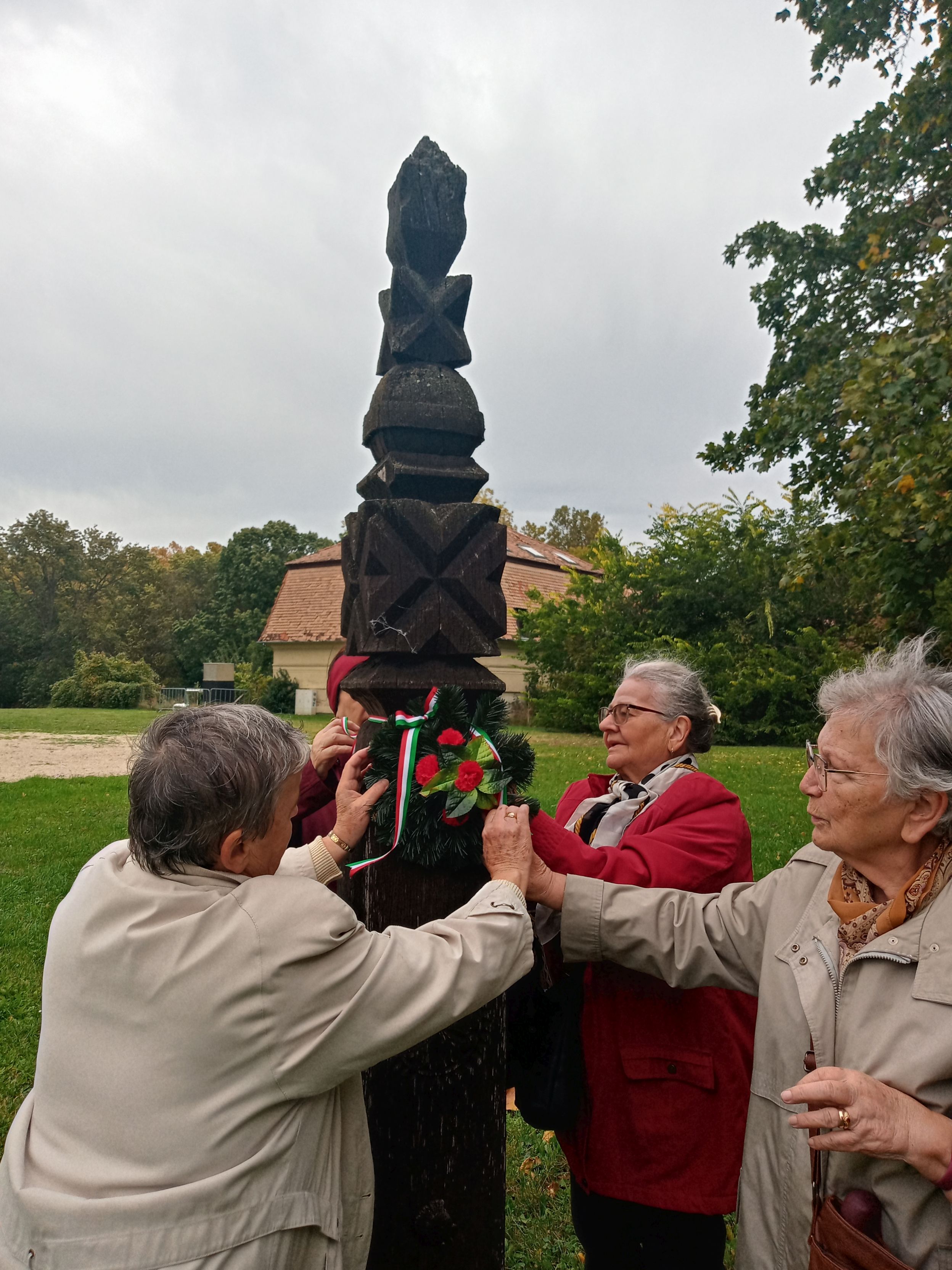 A pápai Esterházy-kastélynál, a Petőfi-szobor mögött több mint harmincnégy éve álló – a felirata szerint a „politikai önkény áldozatai emlékére” 1989 óta meglévő – kopjafa régi, megviselődött emlékkoszorúit szép újra cserélték le a pápai Petőfi Városbarát Egylet (PVE) önkéntesei a közelgő nemzeti ünnep, a 67 esztendeje kirobbant népfelkelés évfordulója alkalmából, illetve mécseseket gyújtottak az 1956-os helyi történések résztvevői: a városi forradalmi tanács, az üzemi munkástanácsok tagjai, a diákok, az egyszerű munkások, az áldozatok, köztük a fővárosban halálos sebesülést szerzett katonák emlékére.