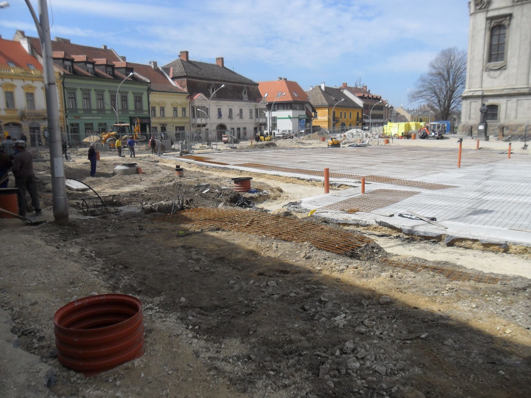 A tavasz beköszöntével gőzerővel folytatódik a munka Pápa megújuló Fő terén. Szükség is van a sietségre, ugyanis Pápa Város Napjára tervezik az átadót.