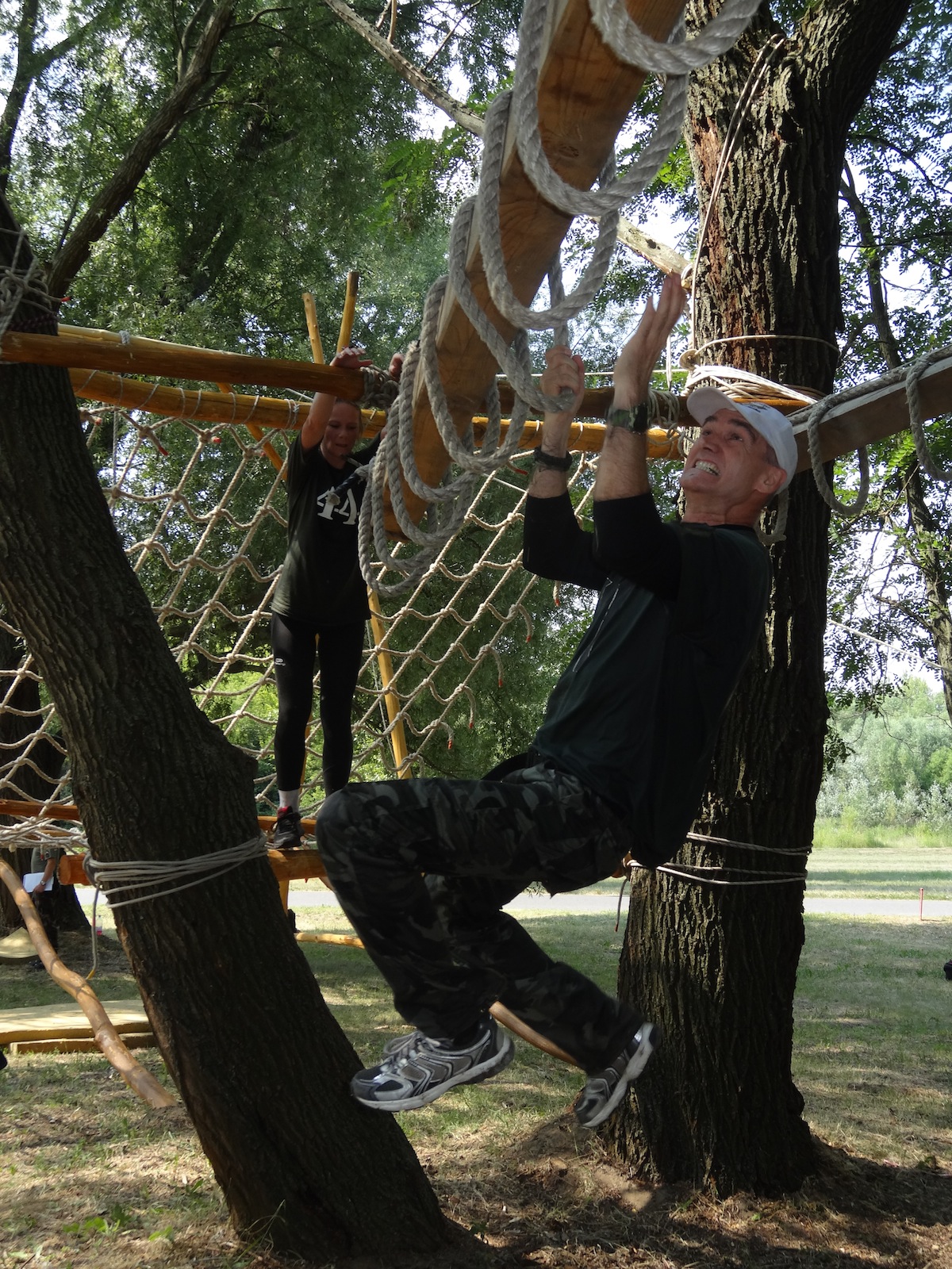 - Mosolyt nem nagyon látni a célba beérők arcán, ami azt jelenti, hogy rettentően elfáradtak. Ennek örülök - mondta a verseny egyik szervezője hozzátéve, jókora elégedettséggel tölti el a versenyzőt, ha képes teljesíteni egy ilyen erősségű pályát. Lendvai Gábor szerint a pálya legnehezebb akadálya a tónál lévő úgynevezett t-rock kocka, amelyet egy daru segítségével a levegőbe emeltek. A tóból egy 3-4 méteres kötélen, majd a kockára szerelt falmászó kapaszkodókon kell felmászni, végül a vízbe ugrani. Ez komoly erőpróba, de a legnagyobb nehézség az, hogy a futást folyamatosan megtörik az akadályok, melyek sokat kivesznek a versenyzőkből.