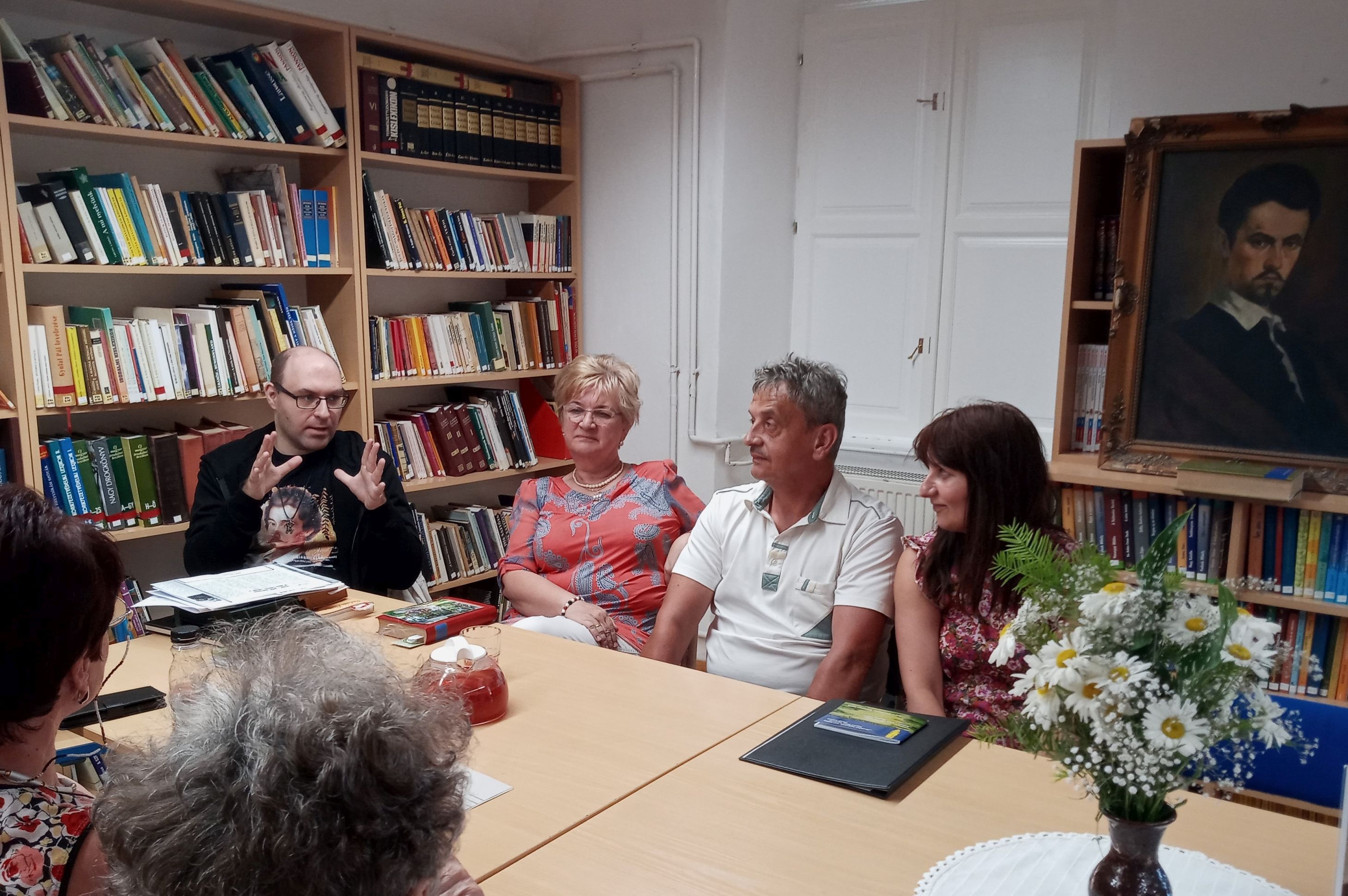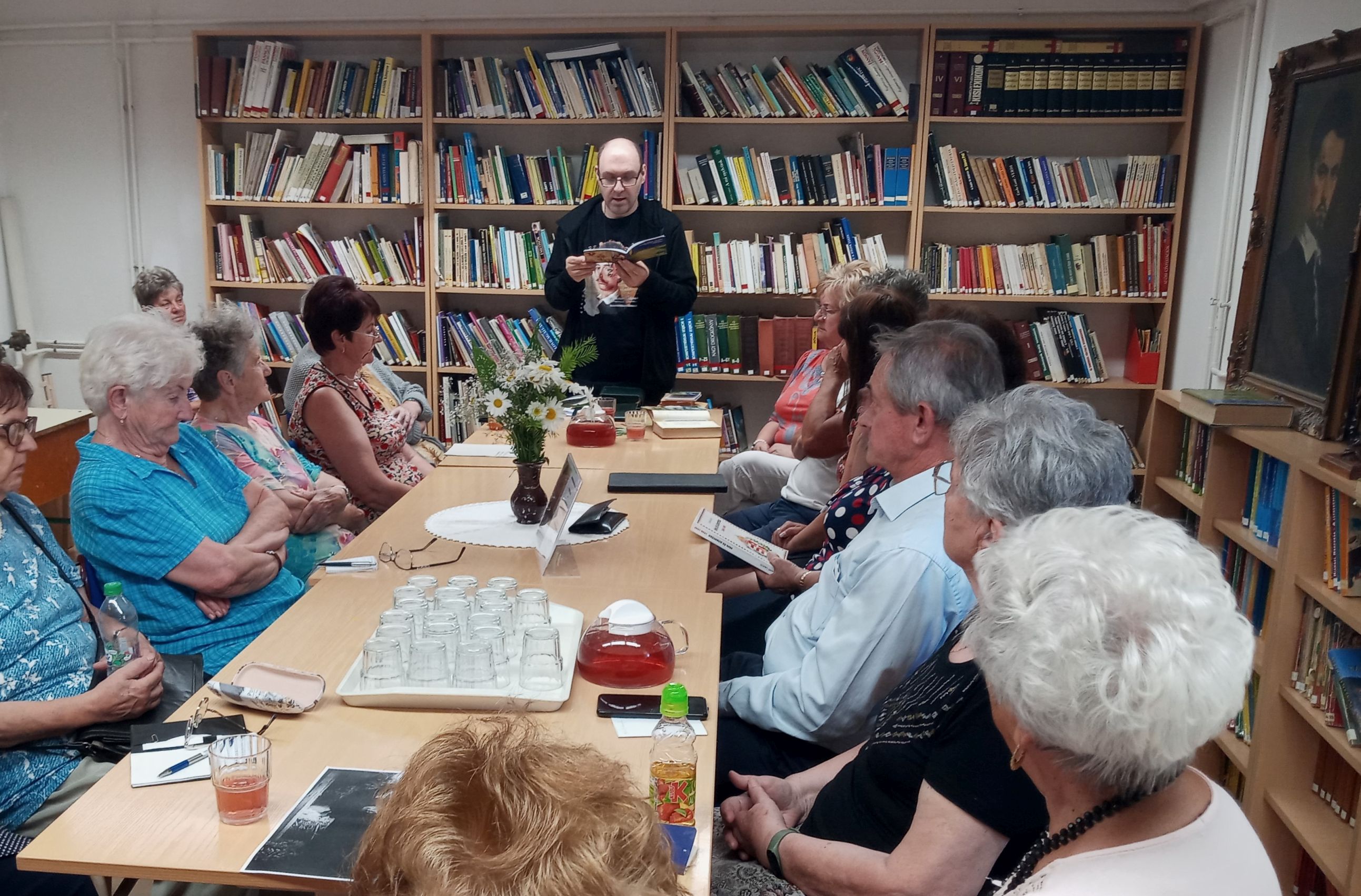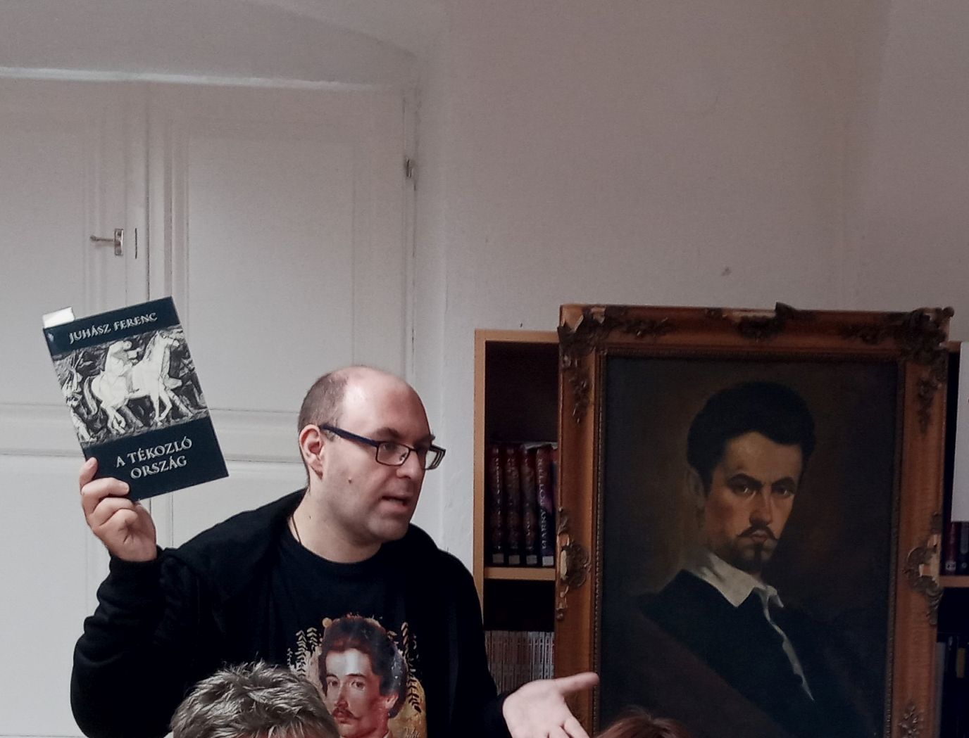 A PVE ügyvivője szólt A tékozló országról (1954), illetve az 1955-ös, Juhász-féle Petőfi-versválogatásról is, melynek egy, a költő által számára 2009-ben dedikált példányát nagy becsben őrzi. De részletet osztott meg Tatay Sándor (1910–1991) Szülőföldem, a Bakony címet viselő művéből (1967) is. A Bakonytamásiban nyugvó, szintén Kossuth- és József Attila-díjas író azon szövegrészletét idézte, melyben Tatay Sámuelnéről írt.