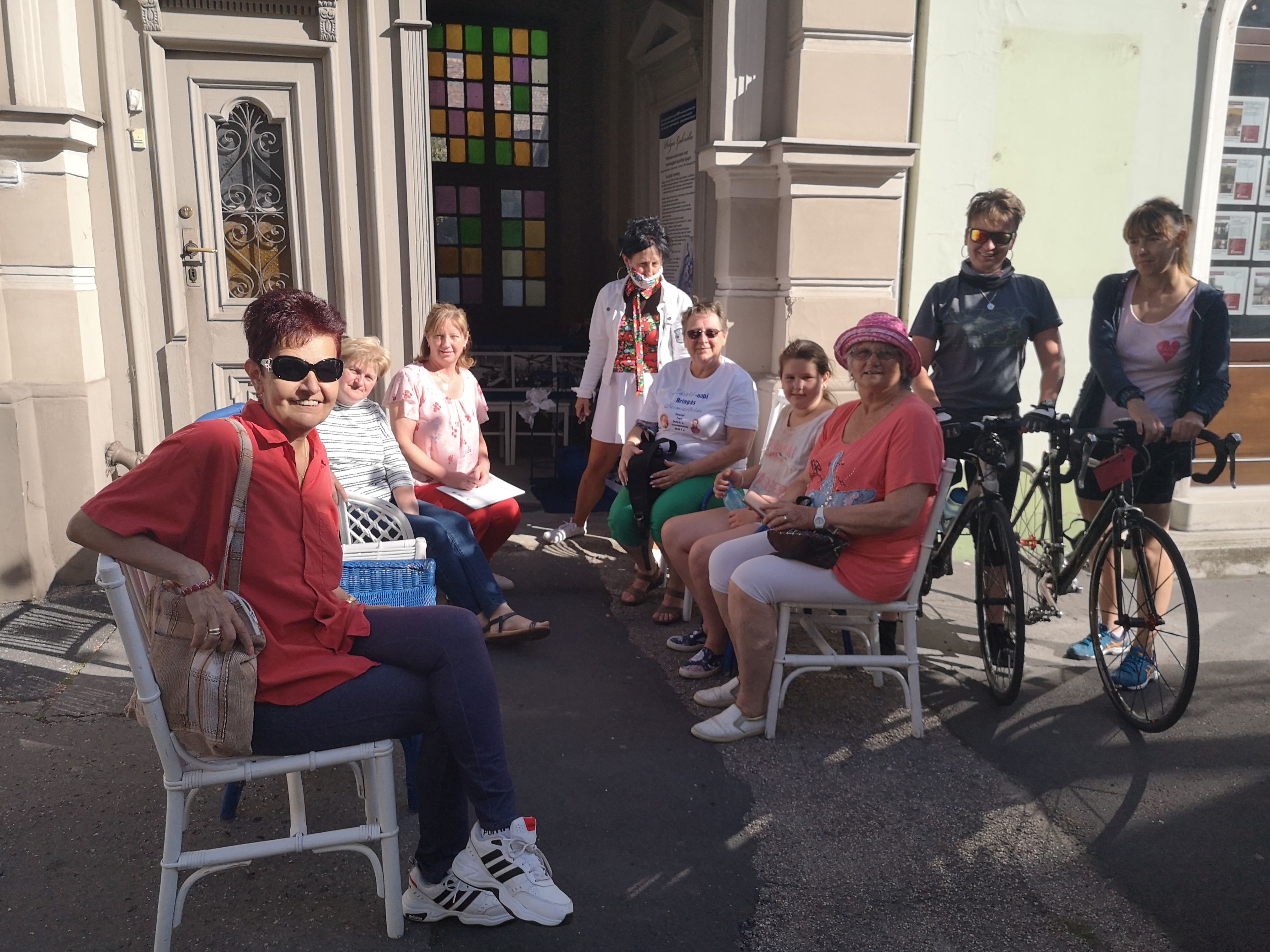 A kedd délutáni programok között egy „Bringás Szomszédolás” elnevezésű elem is szerepelt, melynek keretében kerékpárral keresték fel a korábbi, vagy ma is használatban lévő gyárépületeket. A téma ugyanis az a Pápai Textilgyár volt, amely közel 100 éves sikertörténete ma is aktuális. Polgár Gabriella párhuzamot vont a mai helyzet, és a textilgyár alapításának időszaka közt. Ma a világjárványt követően a gazdaság újraindítása érdekében támogatások és adókedvezmények formájában igyekeznek élénkíteni a gazdaságot, ahogy a századfordulón szintén a gazdaságot stimuláló intézkedések hatására létesült az új üzem Pápán. – A pápai textilgyártás csaknem 100 éves sikertörténete optimistává tehet bennünket. Az így létrejött gyár nemcsak Európában, de a tengerentúlon is sikeres volt, és majdnem 100 éven át biztosított tisztes megélhetést a városban és környékén élő családok számára – mondta el az alkalom megszervezője, akinek édesapja, a program névadója, Polgár László szintén évtizedeken át volt az üzem munkatársa.
