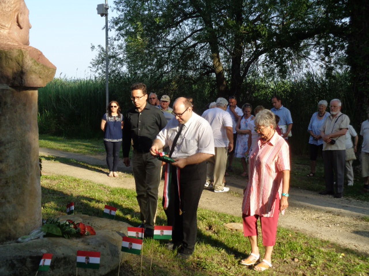 Végül a június 8-i emlékprogram résztvevői a 75 esztendeje a nyilasok által kivégzett nemzetiszocializmus-ellenes Bajcsy-Zsilinszky Endre emlékére koszorúkat, virágokat helyeztek el, s gyertyákat gyújtottak a pálkövei emlékház lépcsőjénél, a házfalon lévő márványtáblánál, az épület mellett magasodó – Kiss László pápai művésztanár alkotta – mellszobornál, illetve a szintén az épület mellett álló, tavaly avatott Vigh Károly-emlékkőnél (Vigh Károly / Losonc, 1918. június 28. − Budapest, 2013. november 3. / a történettudományok doktora, a néhai Bajcsy-Zsilinszky Baráti Társaság elnöke volt). Somogyváry Gyula: Magyar című költeményét Vennes Gyöngyi tolmácsolta a megjelent emlékezőknek.
