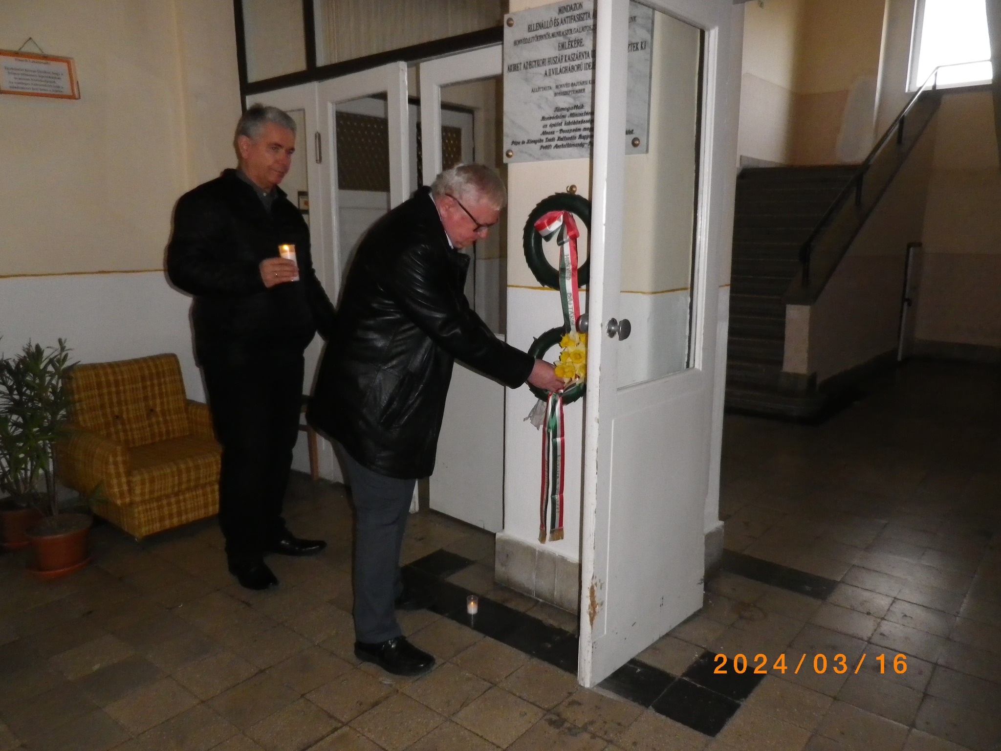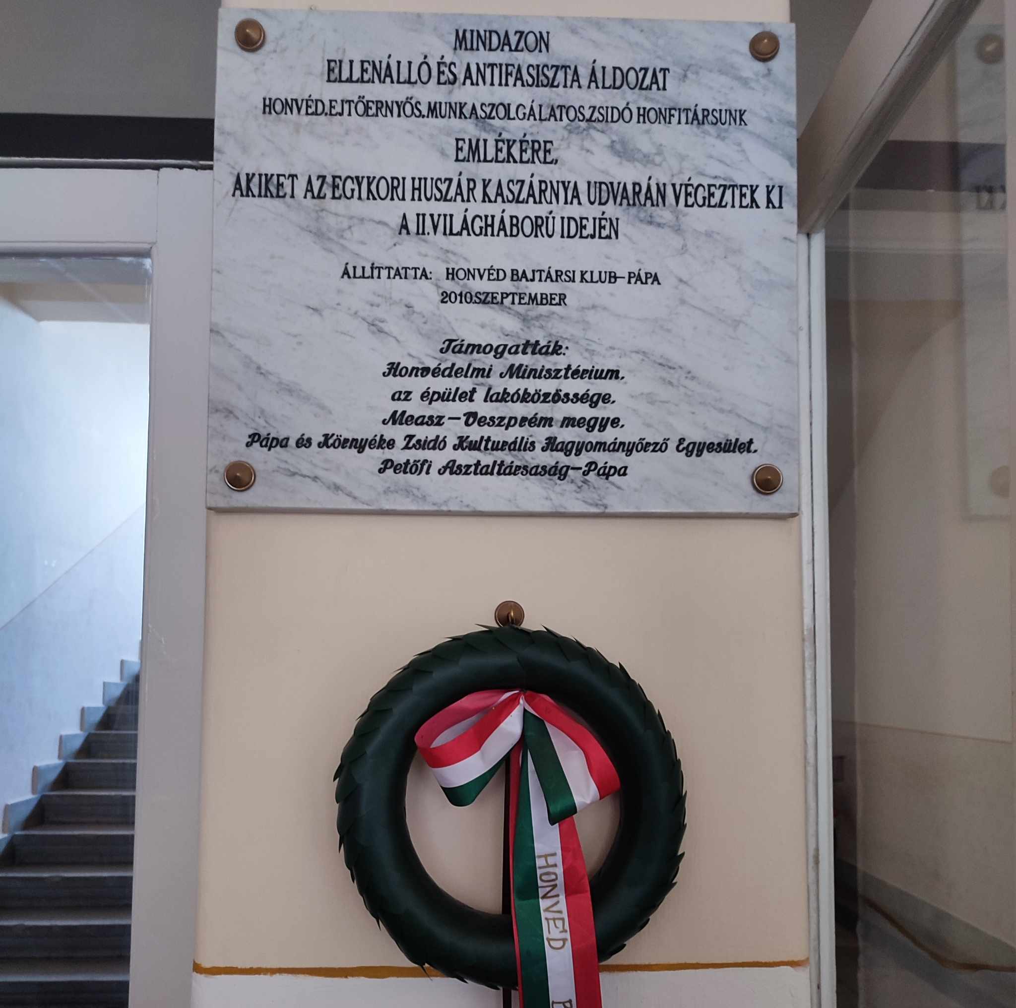 Az 1945.március 16-i utolsó kivégzések napjára - a 79 évvel ezelőtti nyilas uralom pápai áldozataira - emlékeztek a Közösen Pápáért Egyesület, valamint a Pápa és Környéke Zsidó Kulturális Hagyományőrző Egyesület részvételével a volt huszár laktanya egykori parancsnoki épületének földszinti lépcsőházában, a 14 évvel ezelőtt felavatott márványtábla előtt megállva - Soha nem volt annyi zaklatásnak kitéve Pápa lakossága, mint 1944 utolsó és 1945 első hónapjaiban - írták a megemlékezők, akik mécseseikkel és virágaikkal emlékeztem meg az elhunytakról.