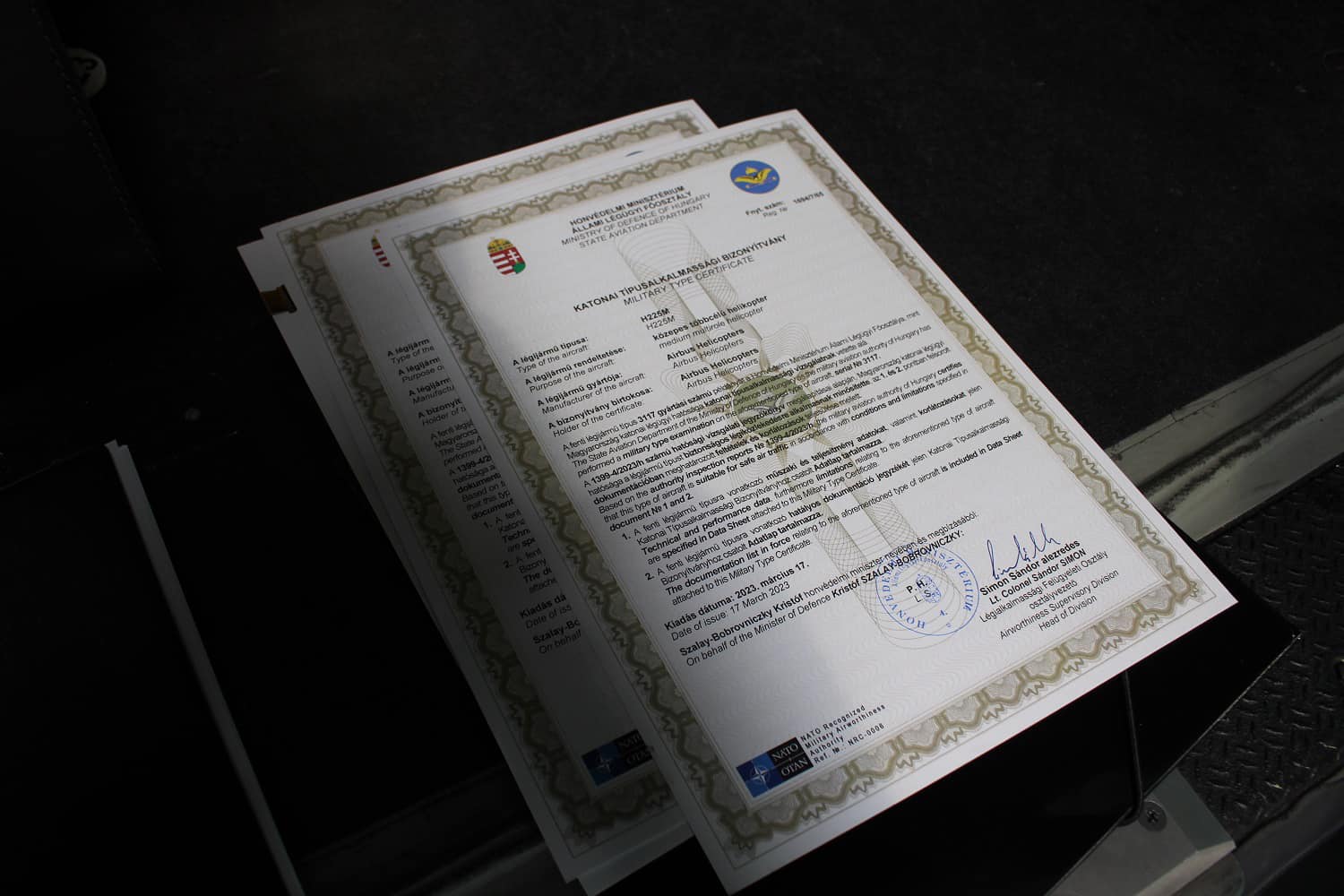 A HM Állami Légiügyi Főosztály szakemberei kiállították a helikopter típusalkalmassági bizonyítványát, így megkezdődhet a fegyverzet tesztelése - írja közösségi oldalán a Magyar Honvédség.