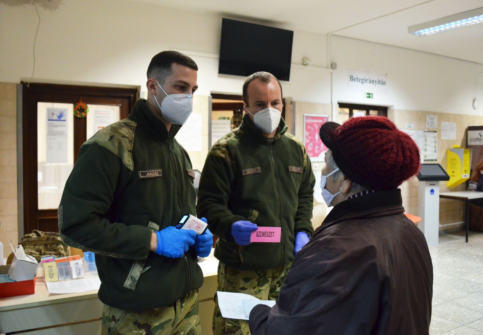 Pápa, Győr, Sopron, Mosonmagyaróvár és Csorna kórházaiban összesen több mint hetven pápai katona hajt végre - az MH Légi Műveleti Vezetési és Irányítási Központ koordinálásával - egészségügyi szakképesítés nélkül ellátható feladatokat. Többek között a gyalogos és gépjárművel történő beléptetésnél, testhőmérséklet-mérésnél, a betegirányításban, a betegek kísérésében, adminisztrációs feladatokban, anyagmozgatásnál, raktározásnál, leltározásnál és fertőtlenítésnél segítenek. Szakmai felügyelet mellett végzett munkájukkal a katonák az egészségügyi dolgozókra nehezedő terhet csökkentik.