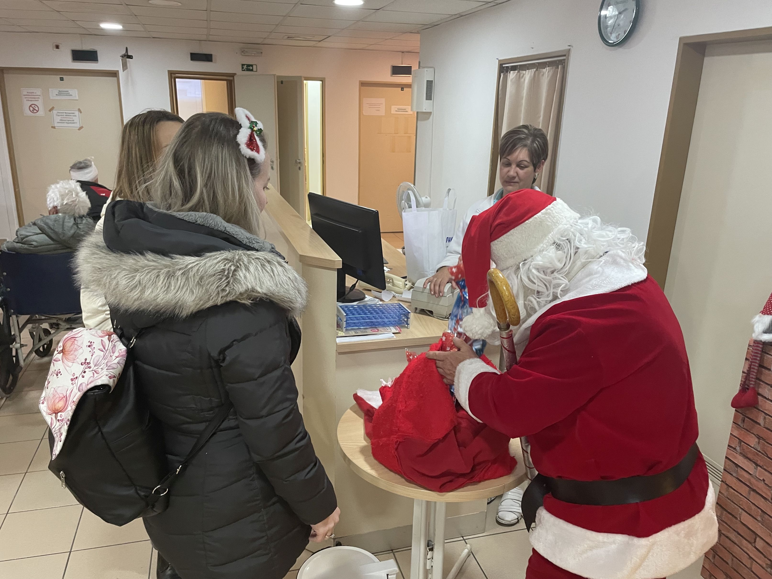 A gyermekosztályon lábadozóknak ajándékcsomagot, az osztályok nővéreinek pedig édességeket vitt a Télapó.